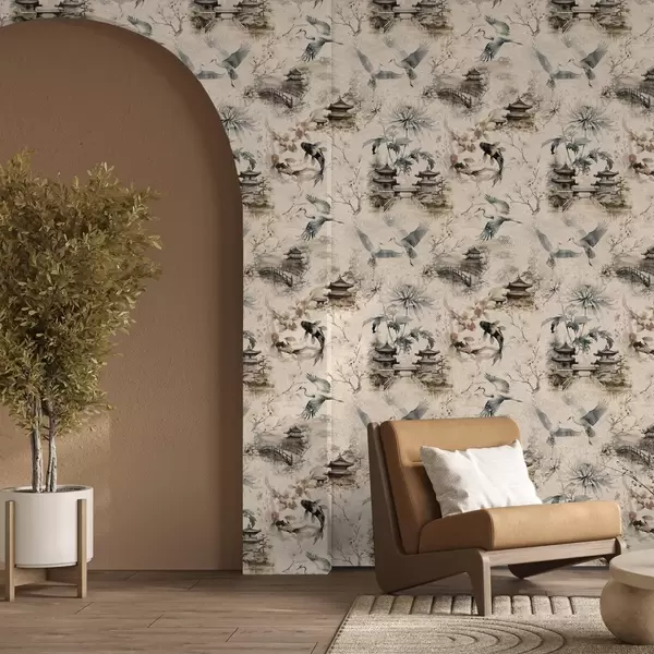 Tapéta Japán templomok, koi halak és darvak lágy háttér előtt Nr. a01040