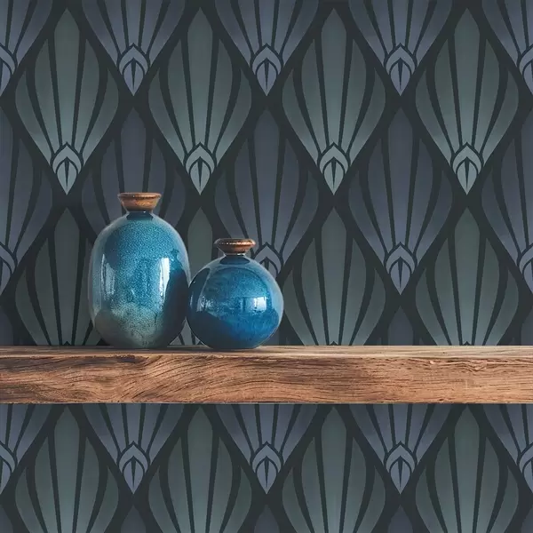 Tapéta Hűvös kék-szürke Art Deco, legyező alakú formákkal Nr. a01064v3