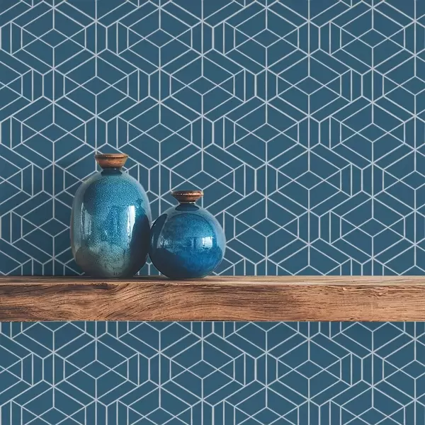 Tapéta Kék háttér fehér lineáris kockákkal rácsban Nr. a01067v1