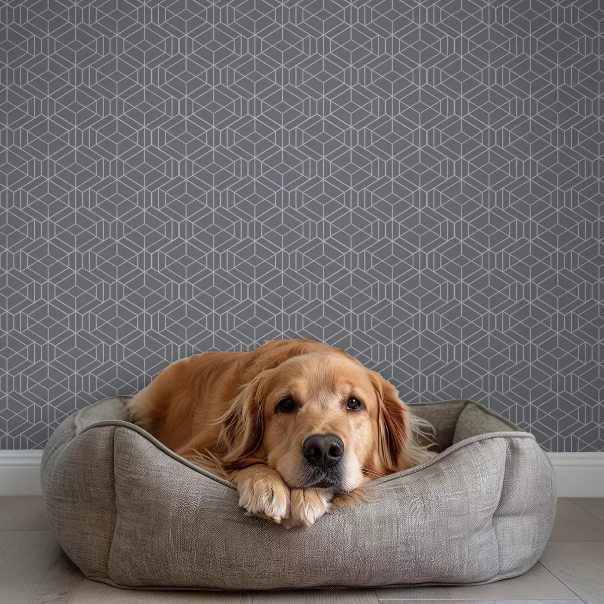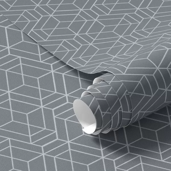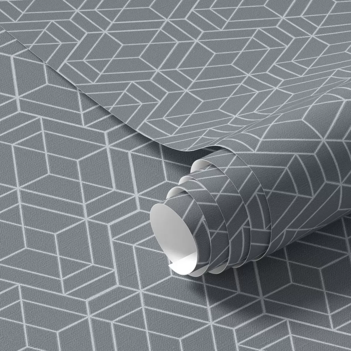 Tapéta Szürke háttér fehér háromdimenziós kockákkal rácsban Nr. a01067v2