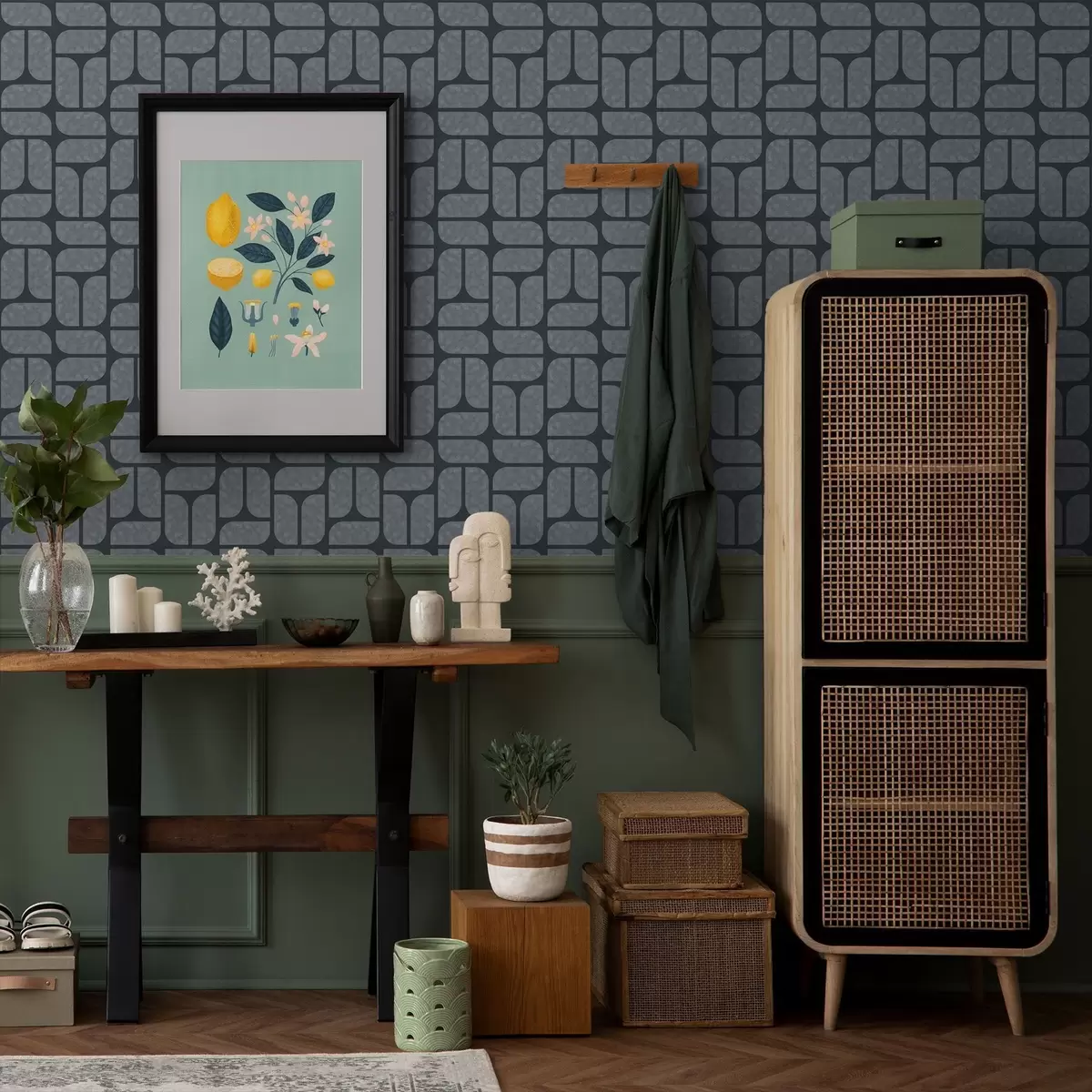 Tapéta Sötét háttér szürke mozaikkal, lekerekített modulokkal Nr. a01069v1