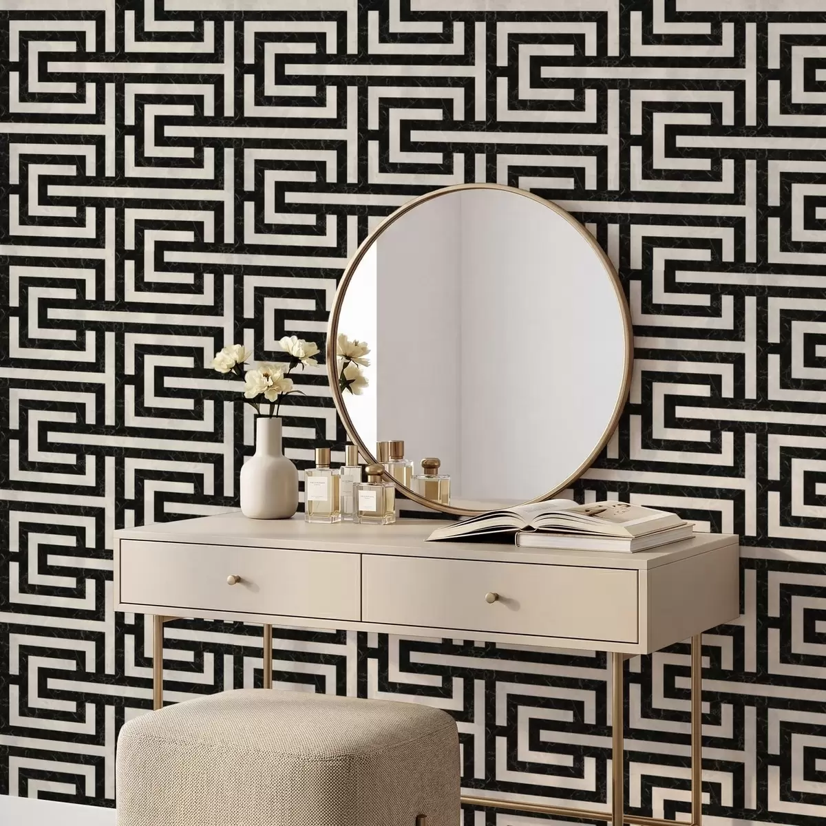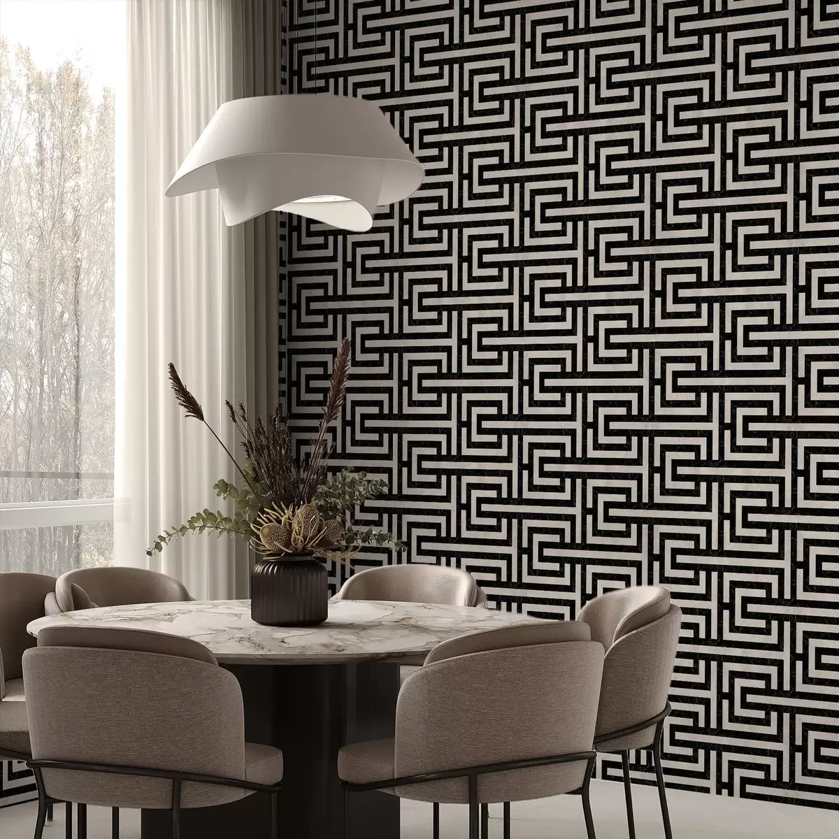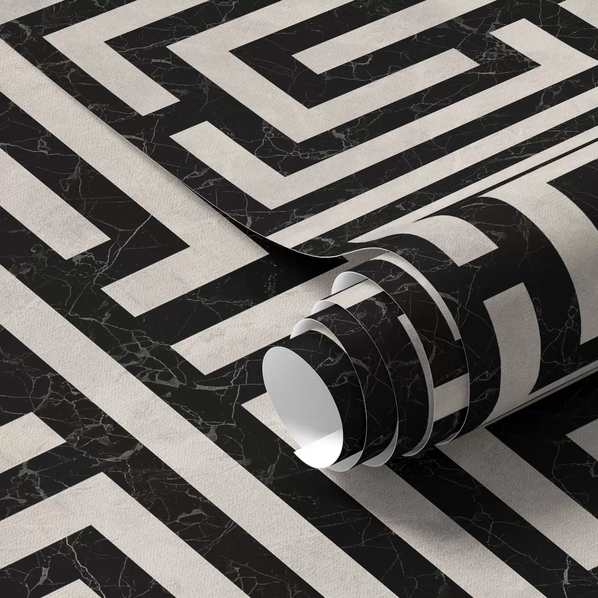 Tapéta Fekete-fehér geometrikus labirintusminta Nr. a01073