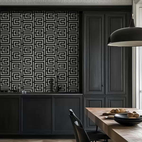 Tapéta Fekete-fehér geometrikus labirintusminta Nr. a01073