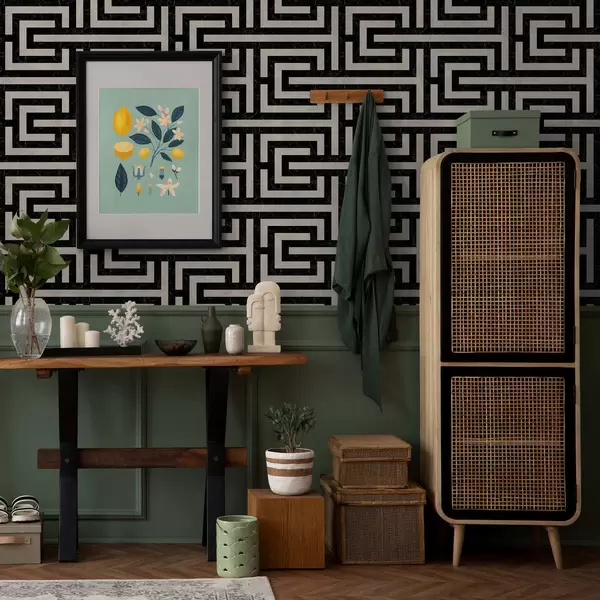 Tapéta Fekete-fehér geometrikus labirintusminta Nr. a01073