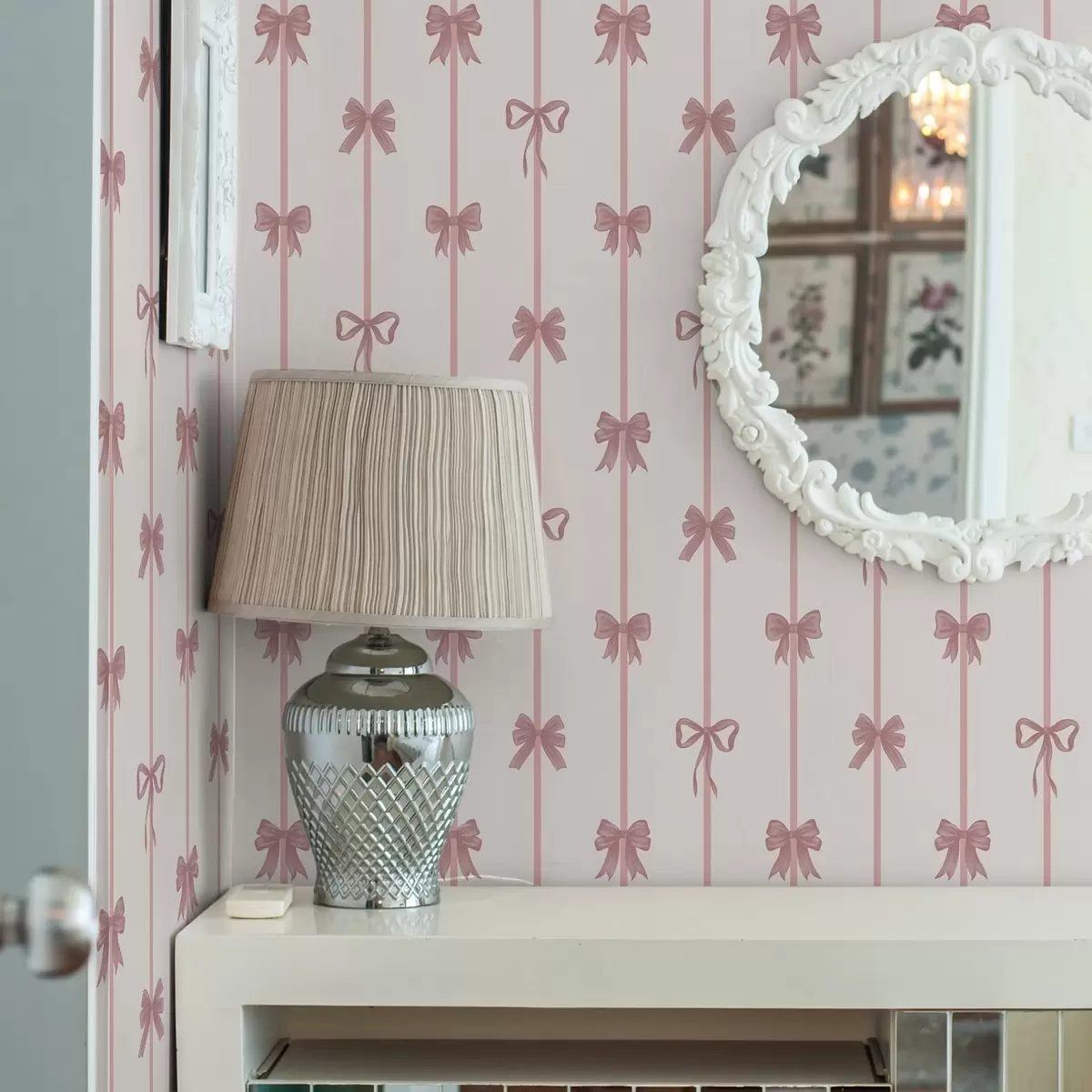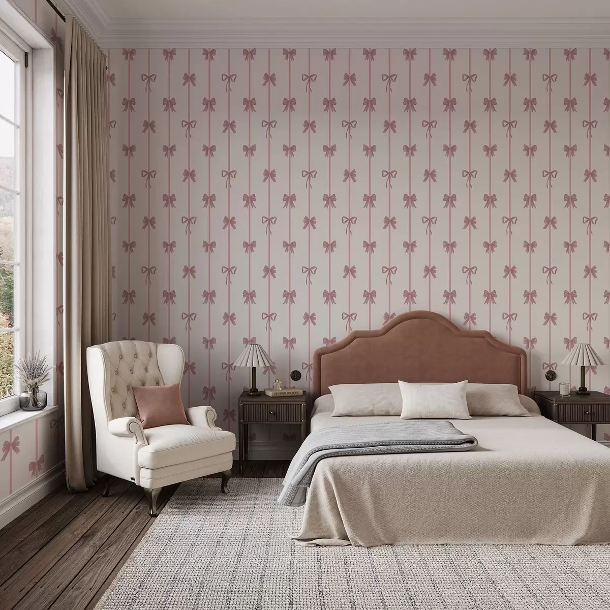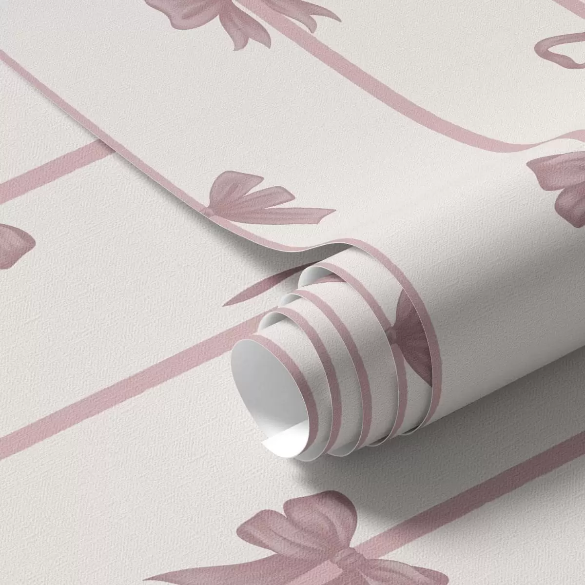 Tapéta Rózsaszín masnik szalagokkal világos háttér előtt Nr. a01074