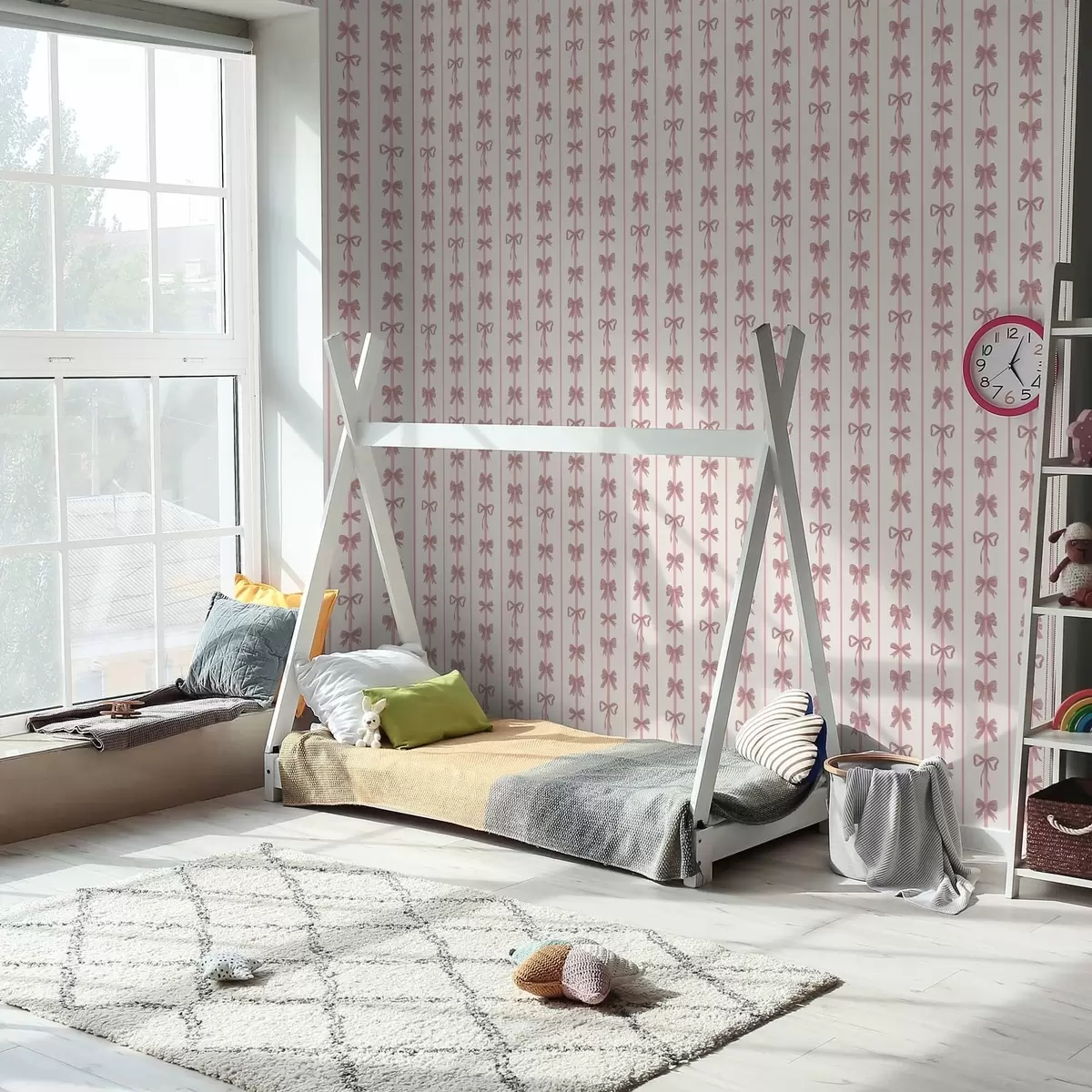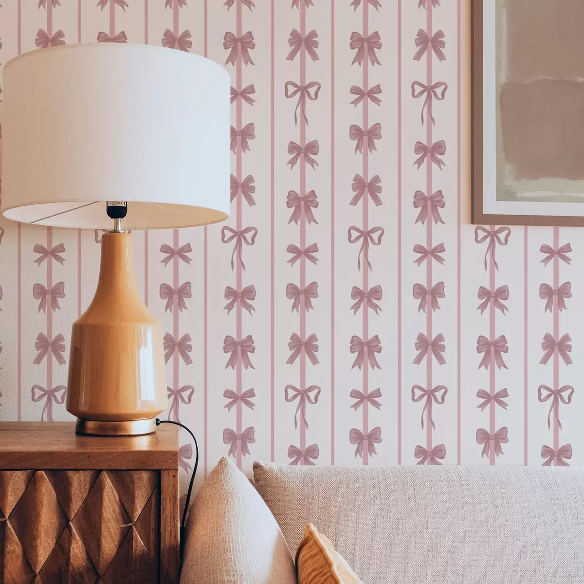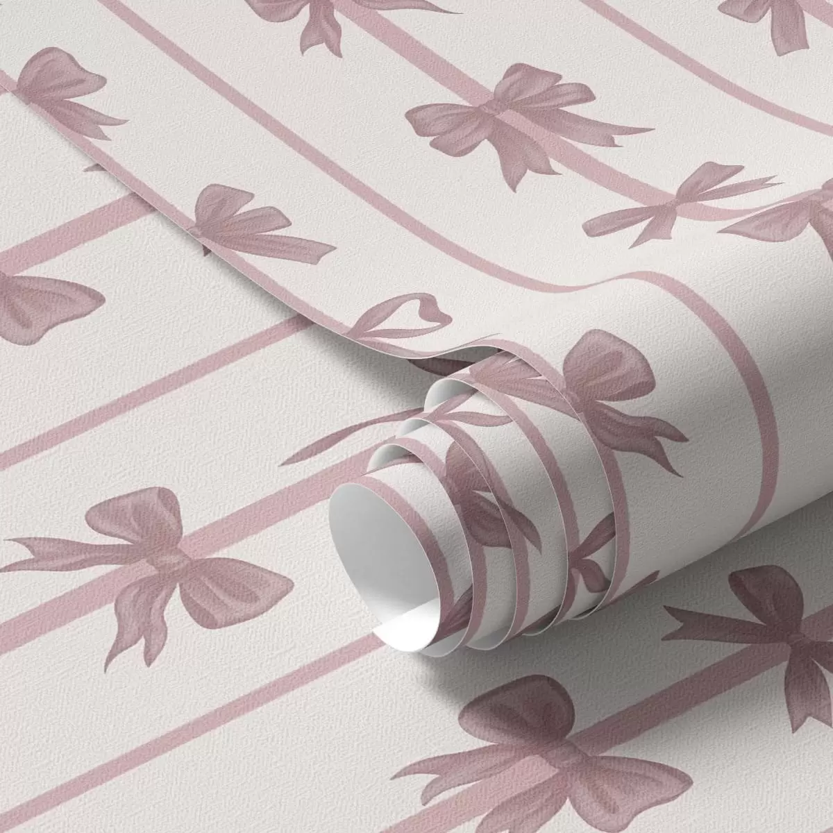 Tapéta Rózsaszín masnik függőleges csíkokban világos háttér előtt Nr. a01075