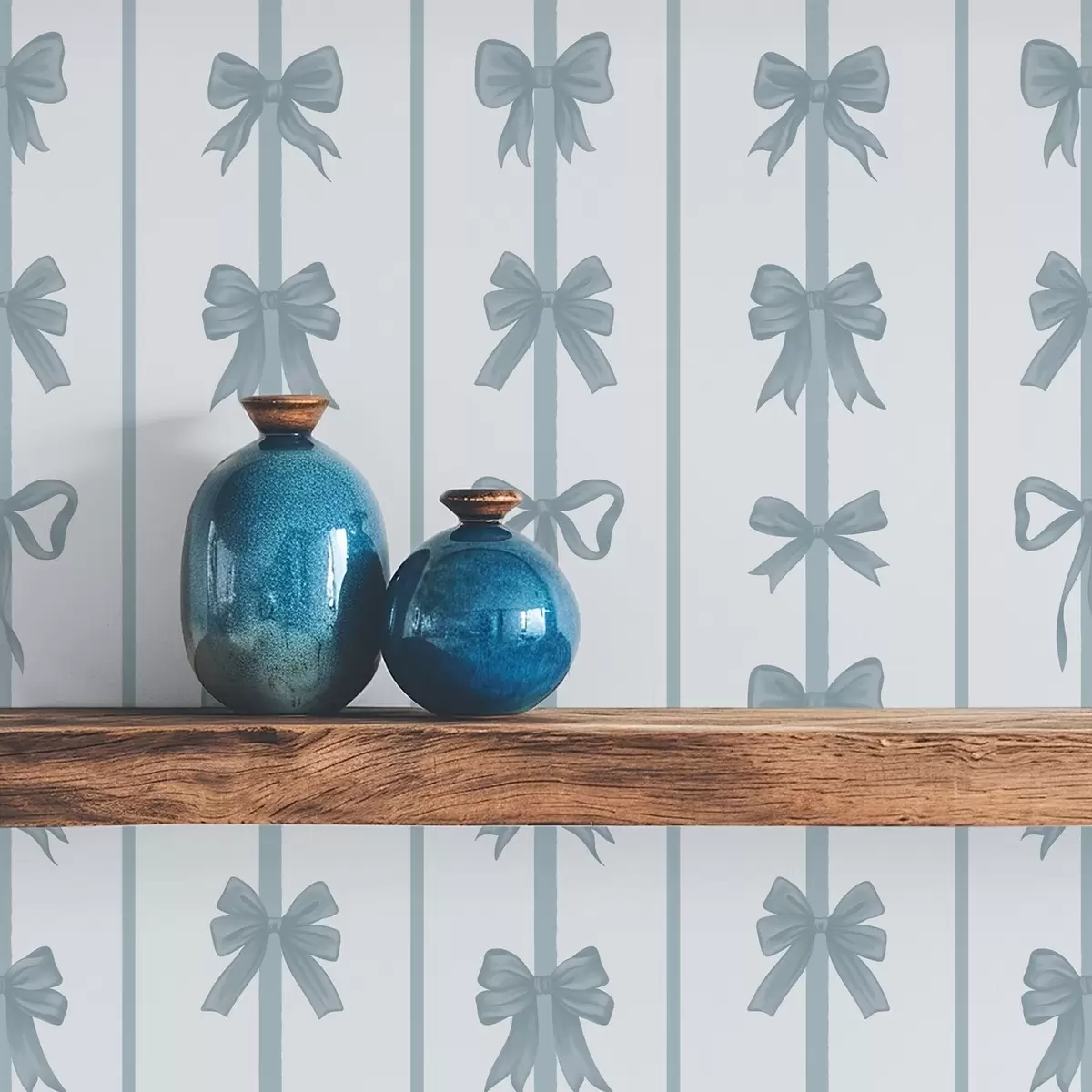 Tapéta Kék csokrok csíkokban világos háttér előtt Nr. a01075v2