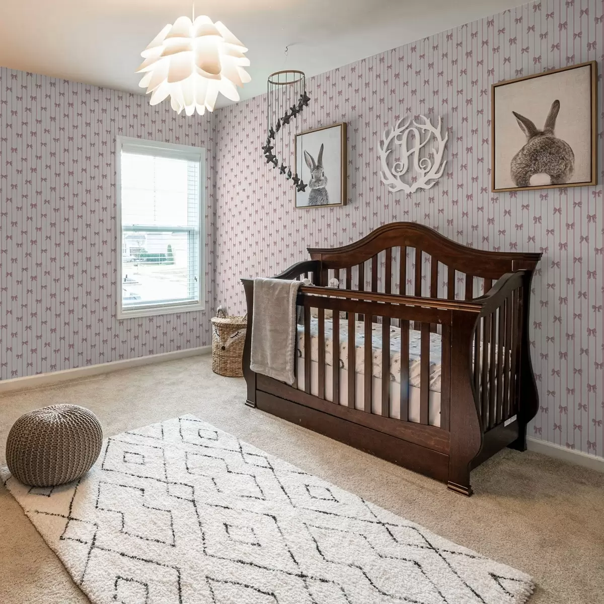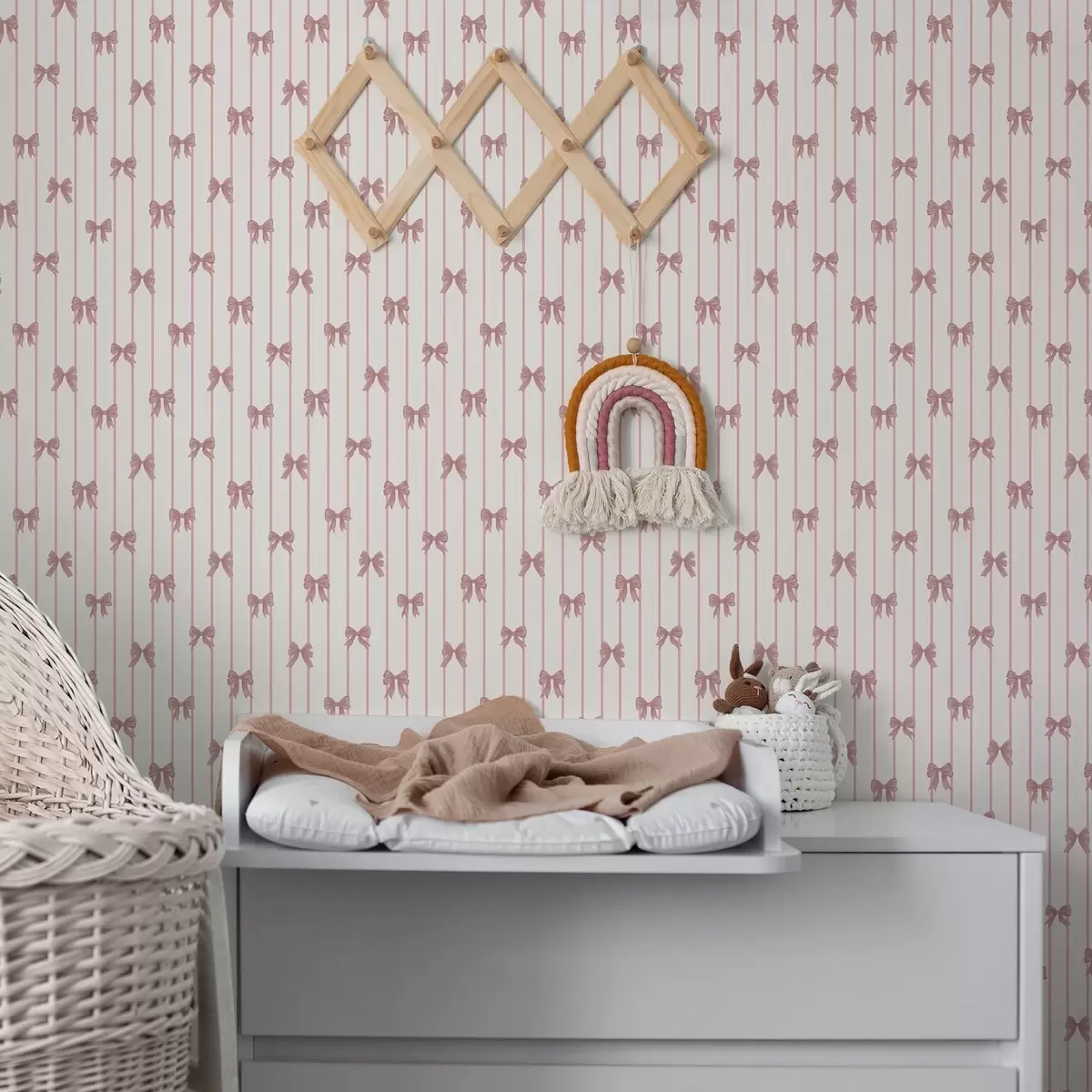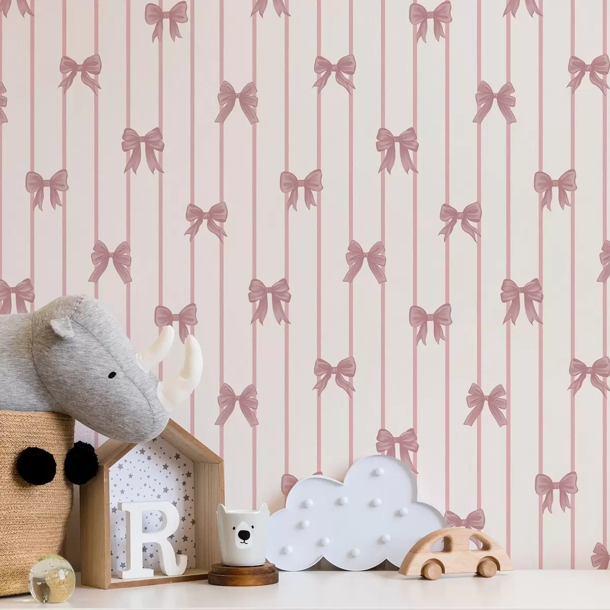 Tapéta Kis rózsaszín masnik függőleges csíkokkal Nr. a01076
