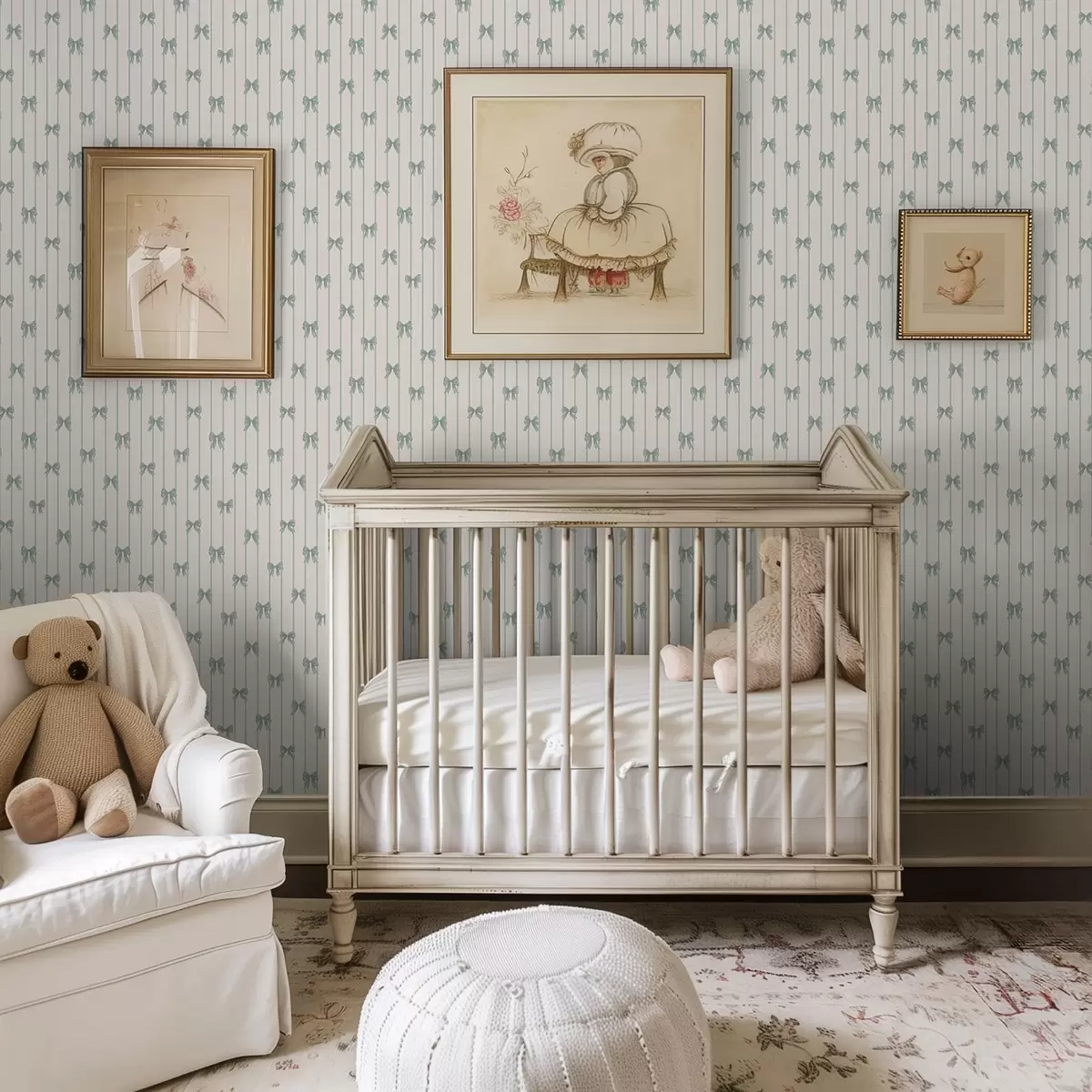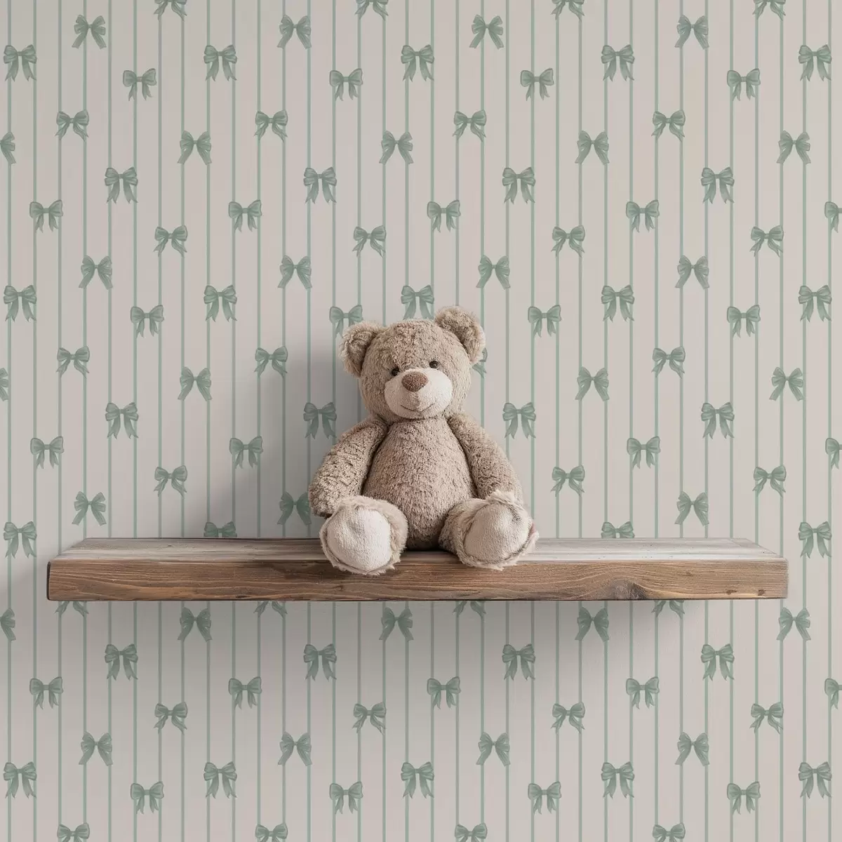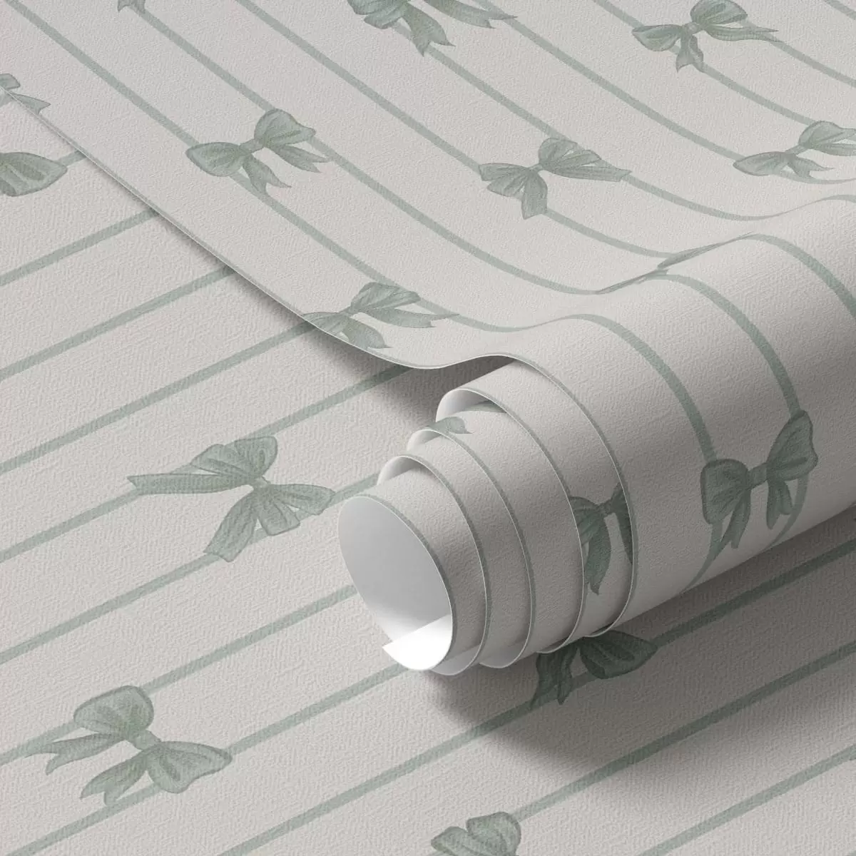 Tapéta Kis zöld masnik csíkokban bézs alapon Nr. a01076v2