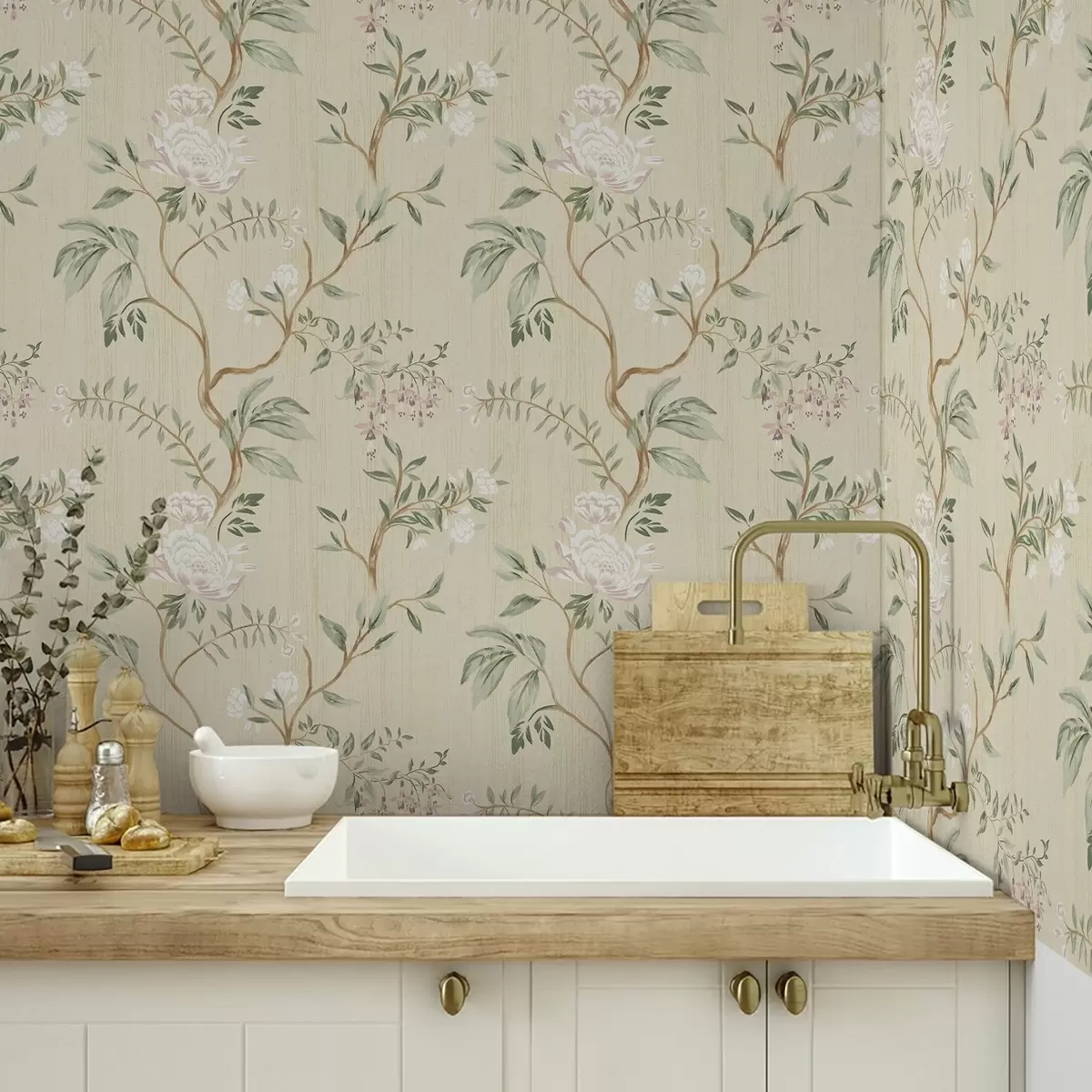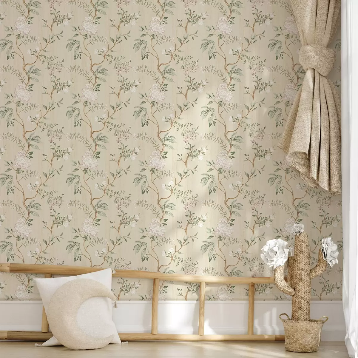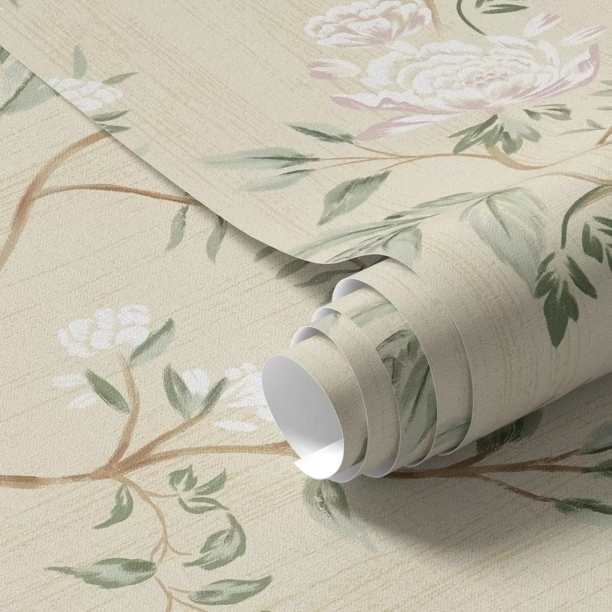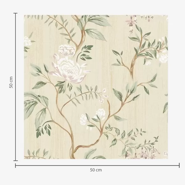 Tapéta Finom ágak virágokkal meleg krém színű háttér előtt Nr. a01084