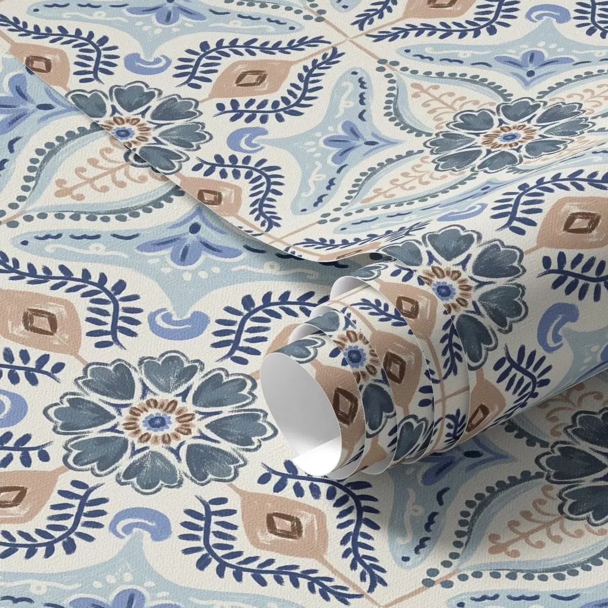 Tapéta Kék-bézs csempe stílusú díszítés, akvarellel festve Nr. a01085