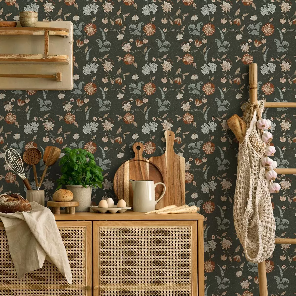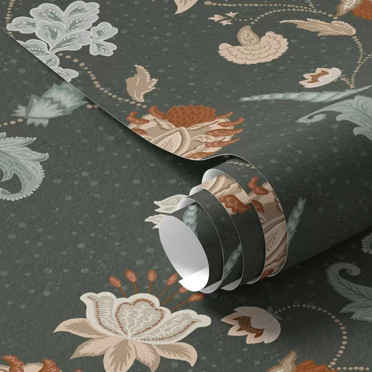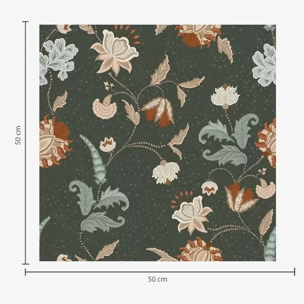 Tapéta Sötétzöld háttér dekoratív virágokkal és levelekkel Nr. a01086