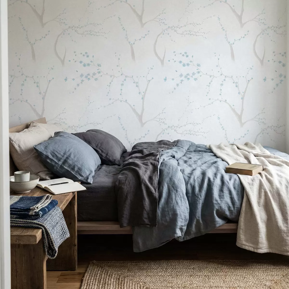 Tapéta Könnyű ágak kék virágokkal Nr. a01111