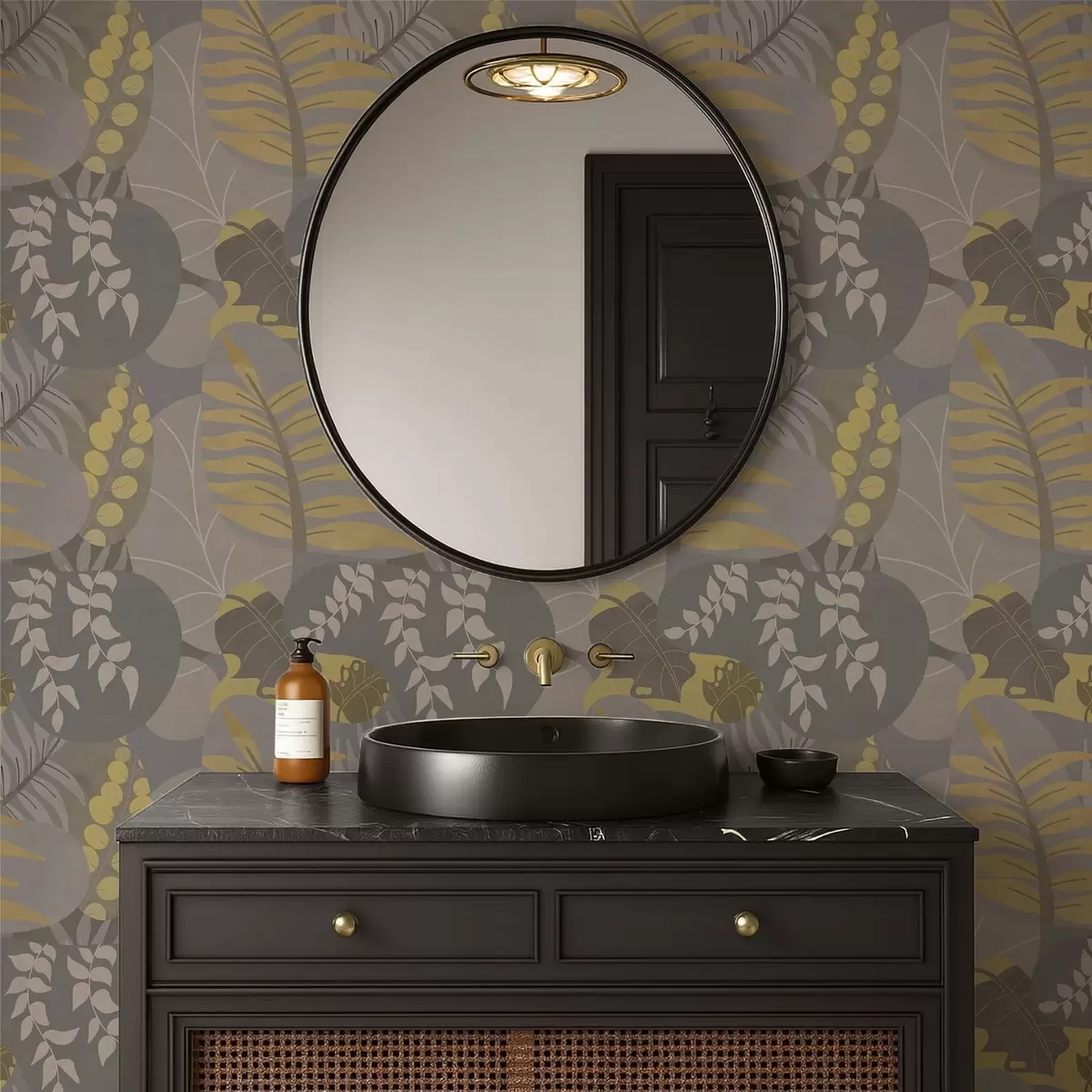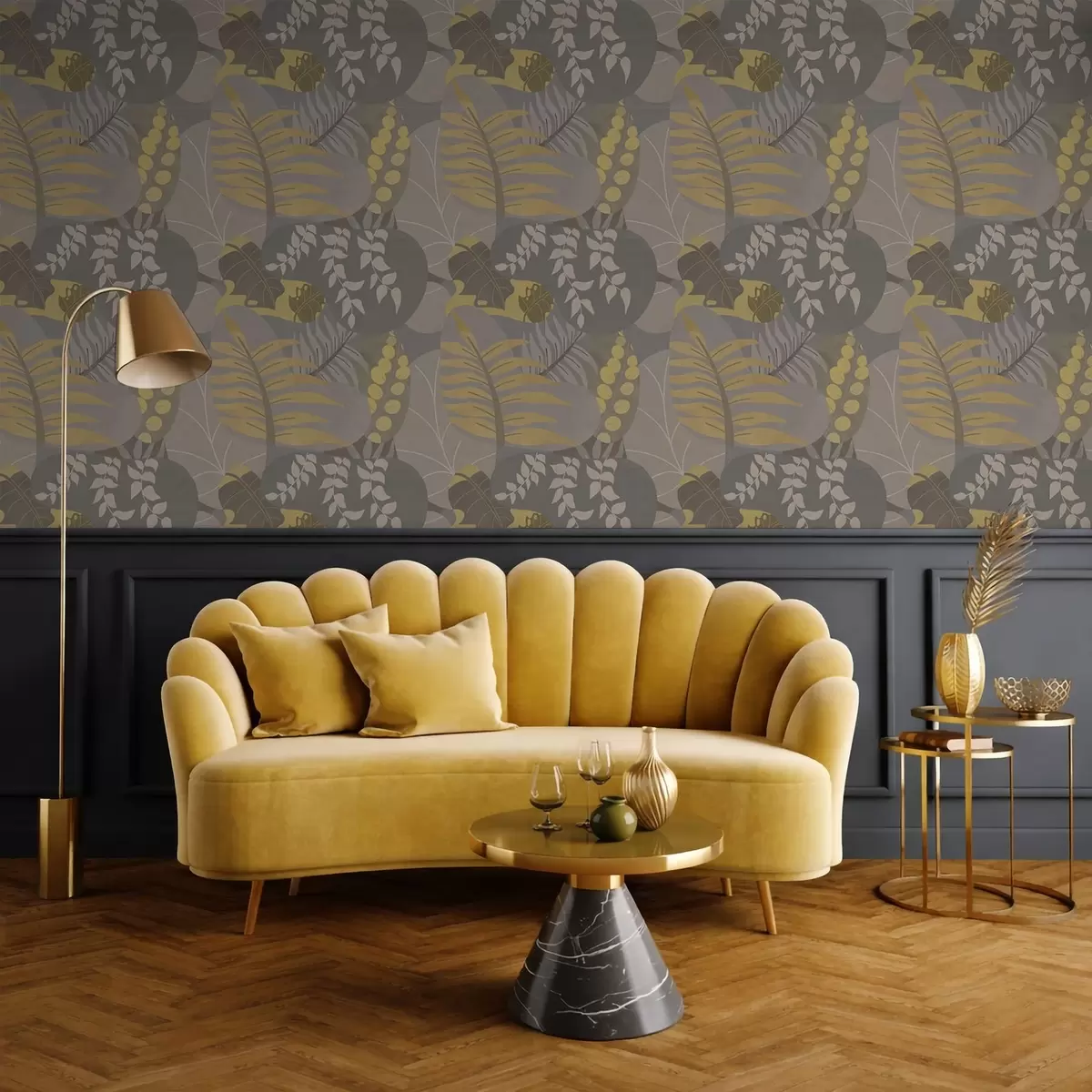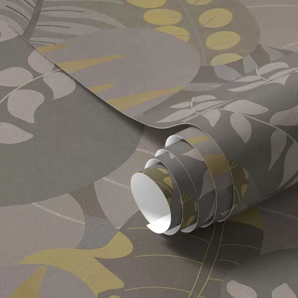 Tapéta Absztrakt levelek szürke és sárga árnyalatokban Nr. a01112