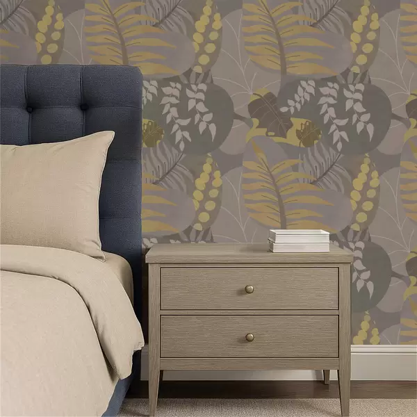 Tapéta Absztrakt levelek szürke és sárga árnyalatokban Nr. a01112