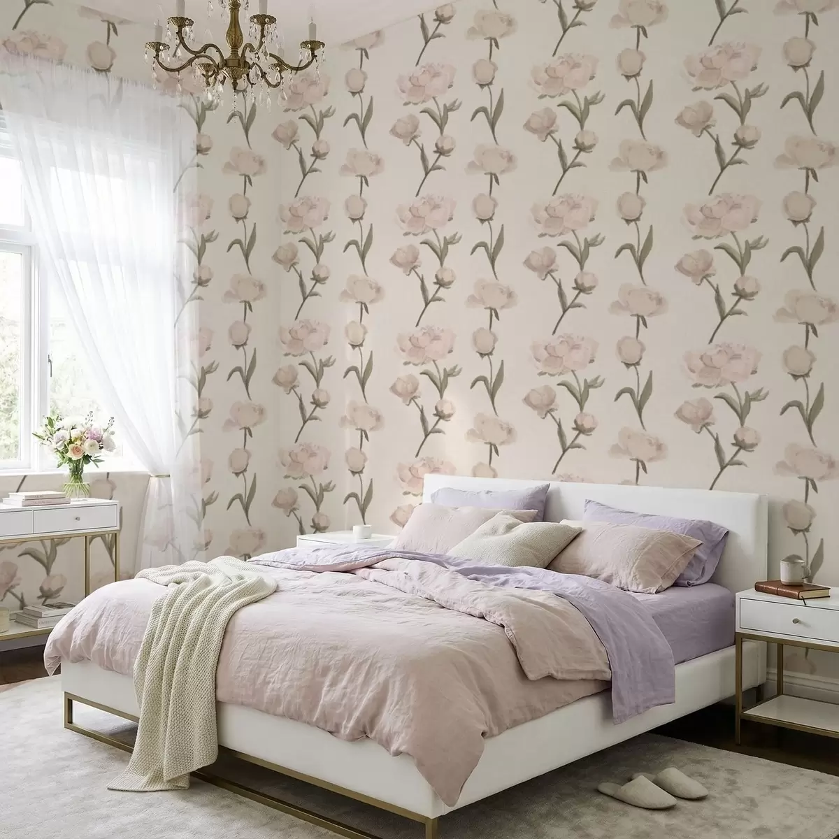 Tapéta Puha rózsaszín pünkösdi rózsák világos háttér előtt Nr. a01114