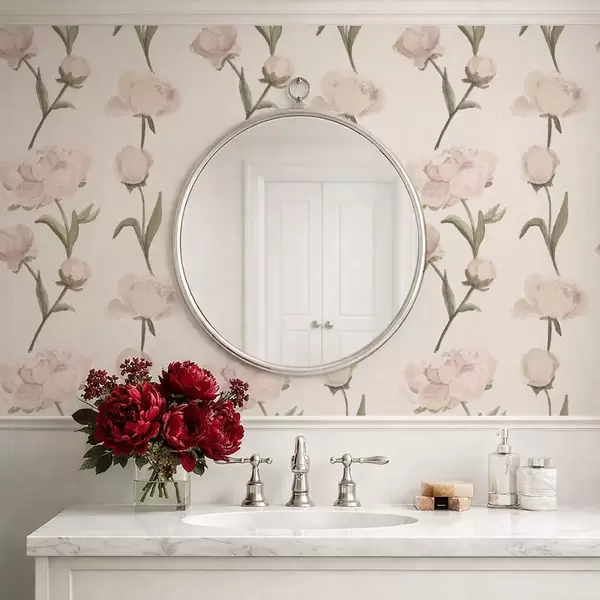 Tapéta Puha rózsaszín pünkösdi rózsák világos háttér előtt Nr. a01114