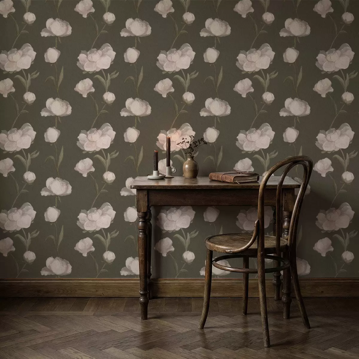 Tapéta Puha rózsaszín pünkösdi rózsák sötét háttér előtt Nr. a01114v1