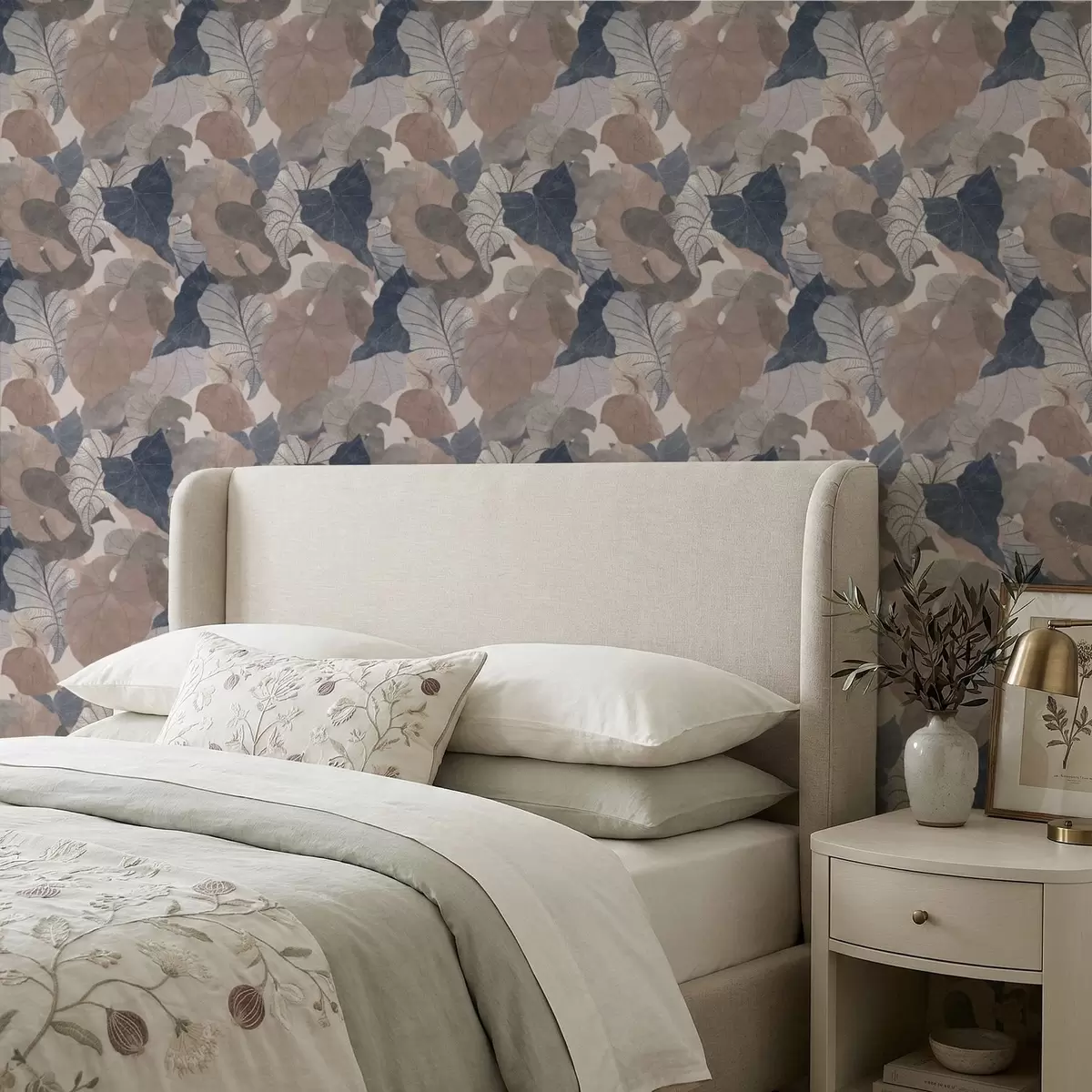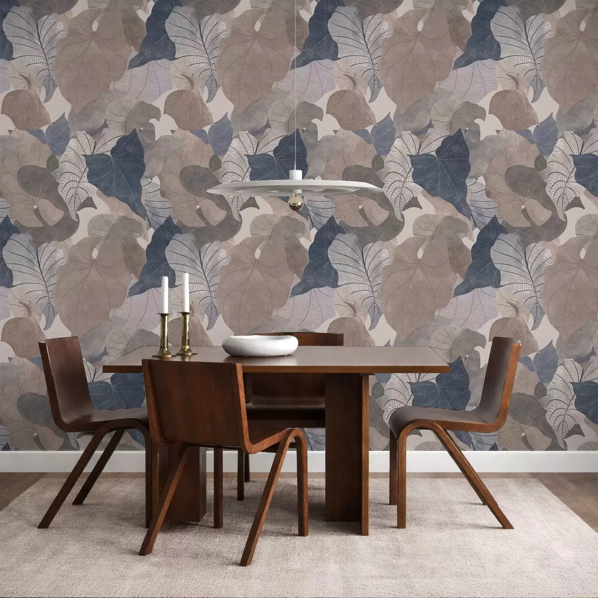 Tapéta Nagy, stilizált levelek pasztell árnyalatokban Nr. a01115