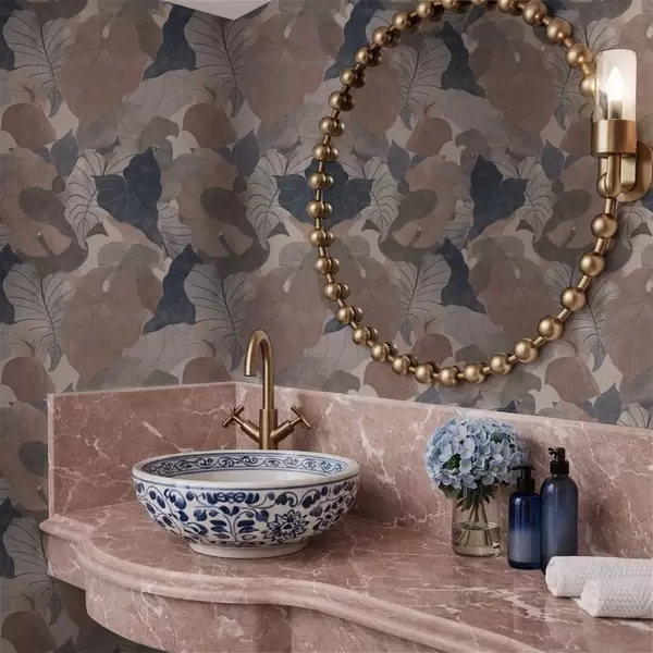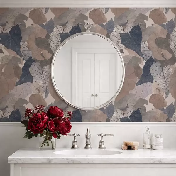 Tapéta Nagy, stilizált levelek pasztell árnyalatokban Nr. a01115