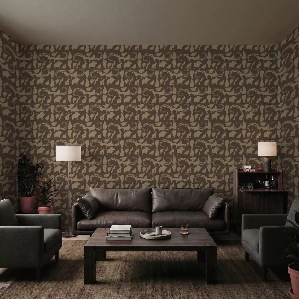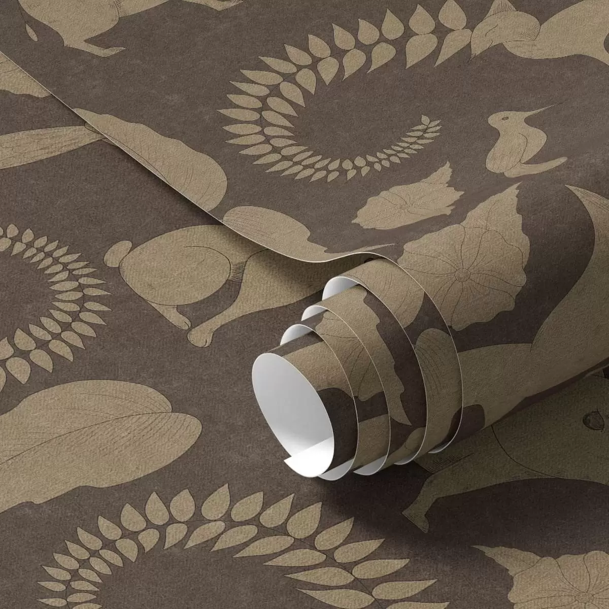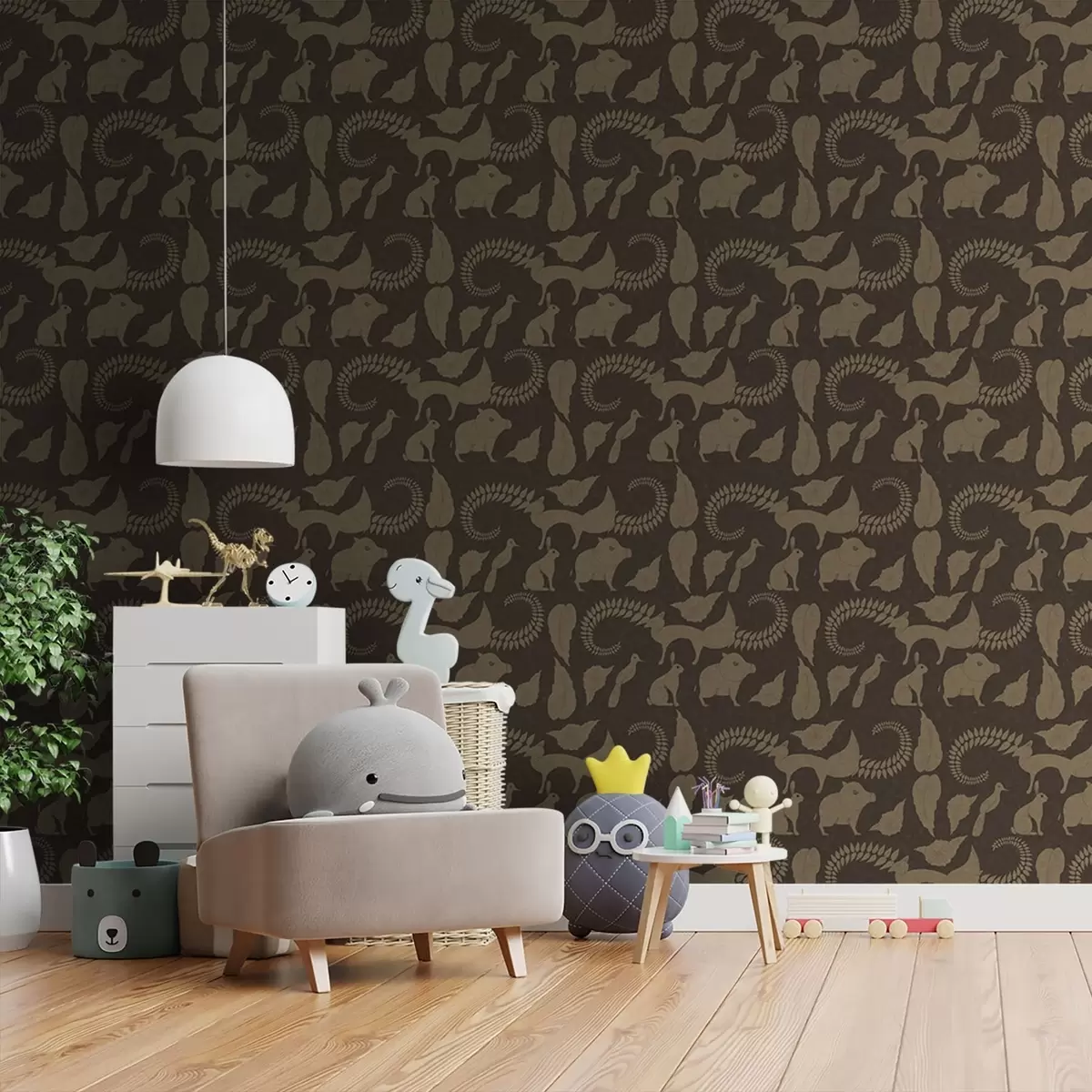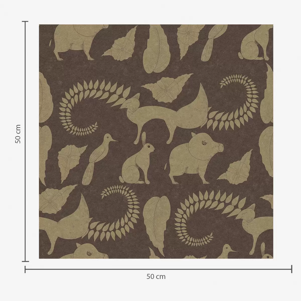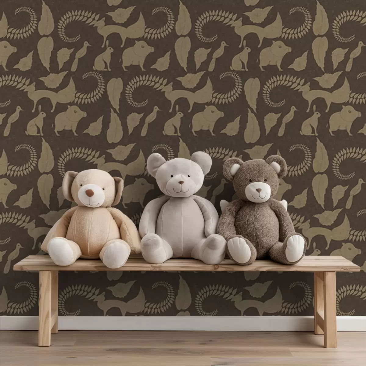 Tapéta Erdei minta állatokkal barna háttérrel Nr. a01121