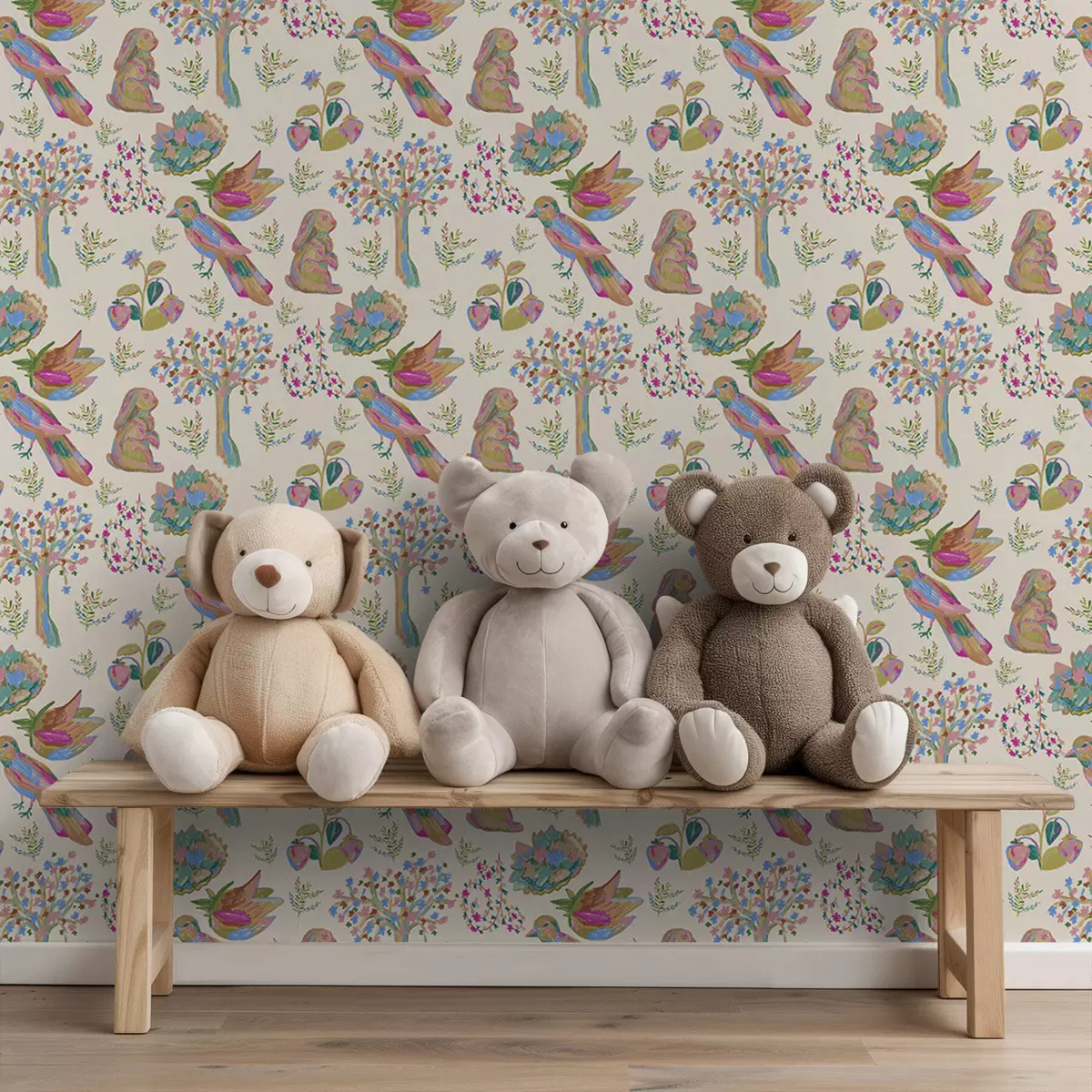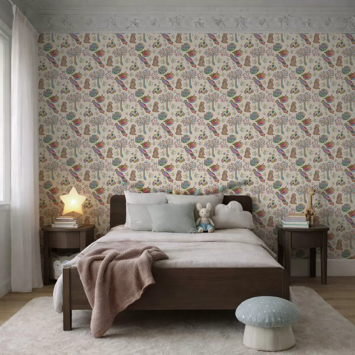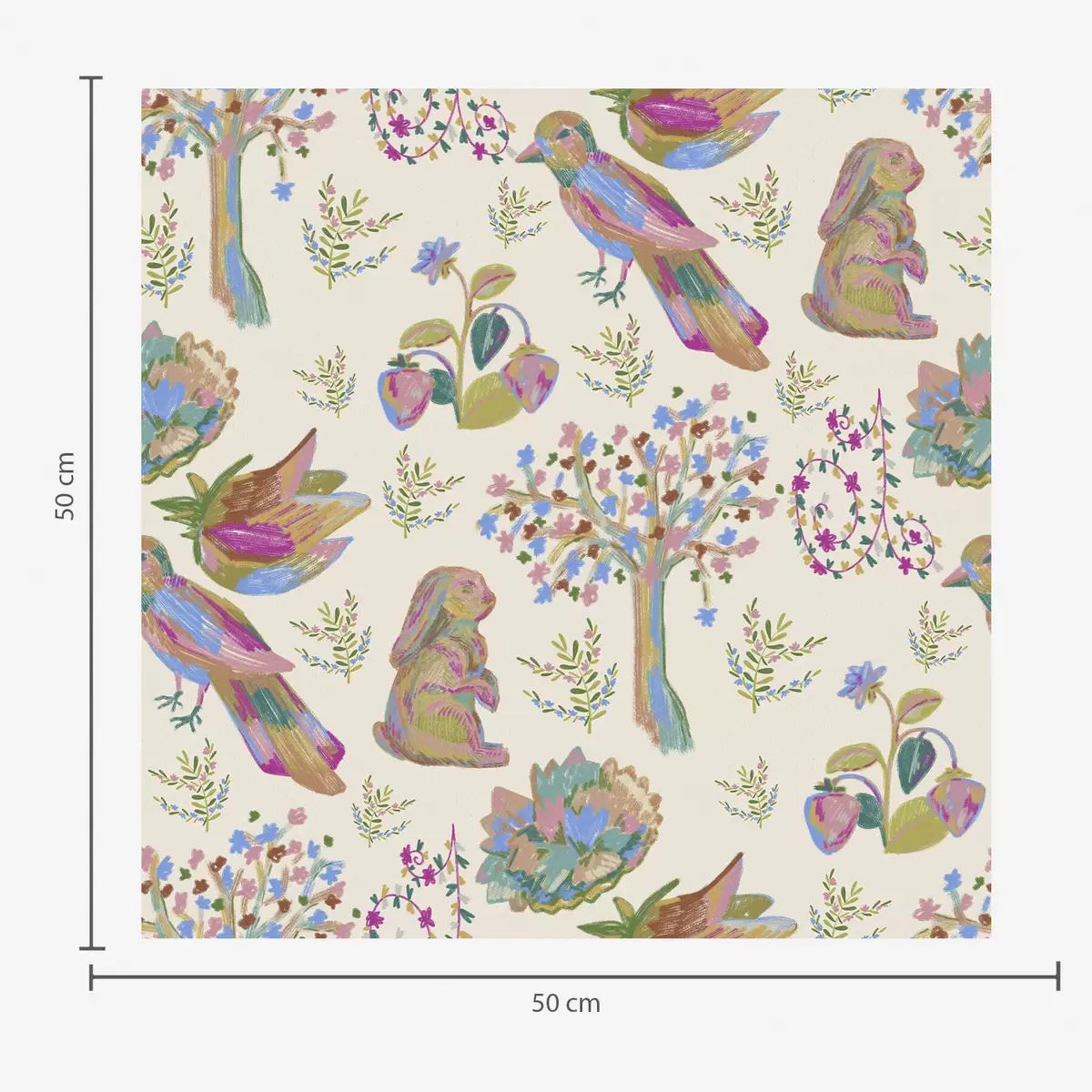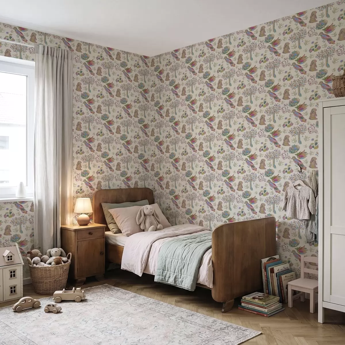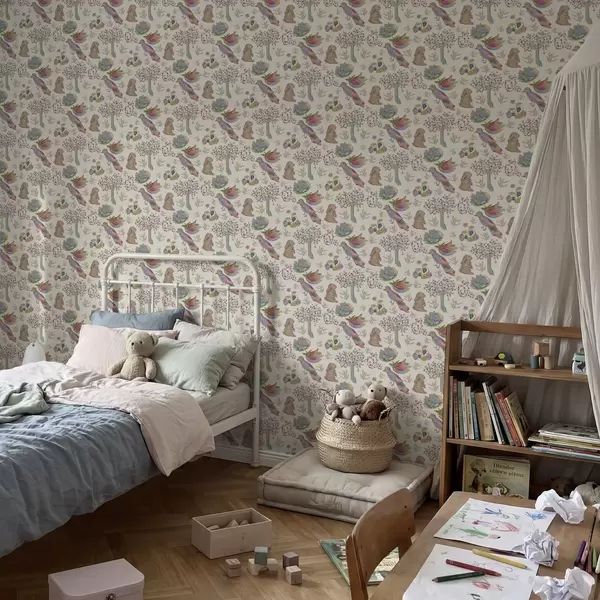 Tapéta Színes gyerekminta madarakkal és nyulakkal Nr. a01127