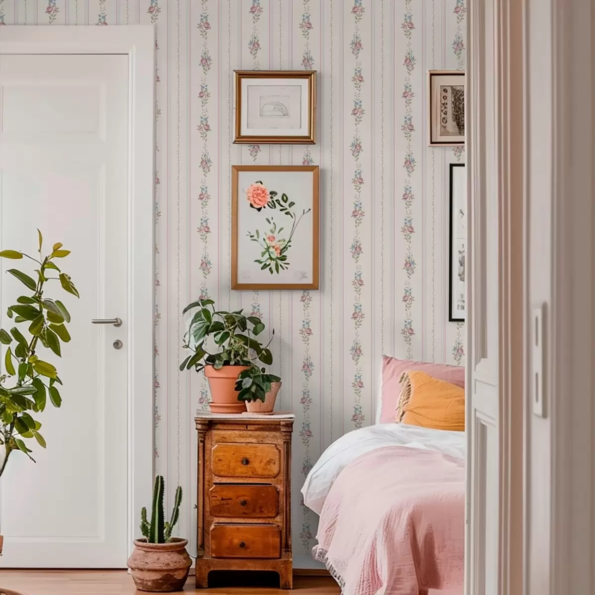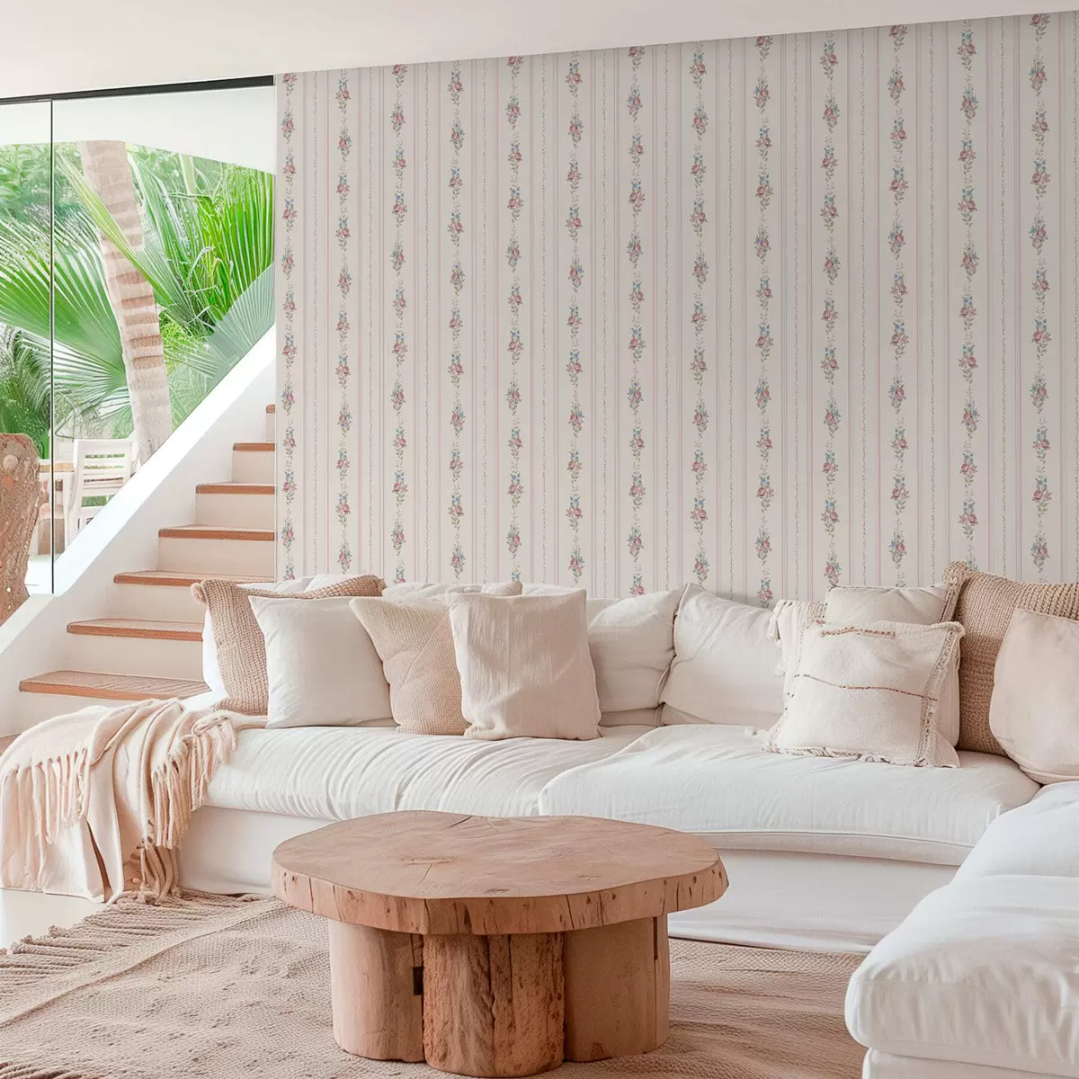 Tapéta Csíkos virágminta pasztell színekben Nr. a01130