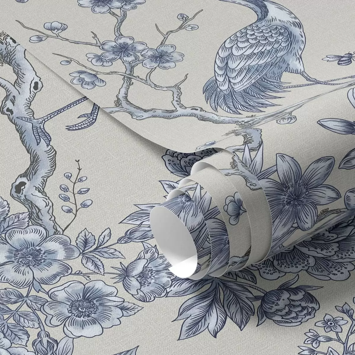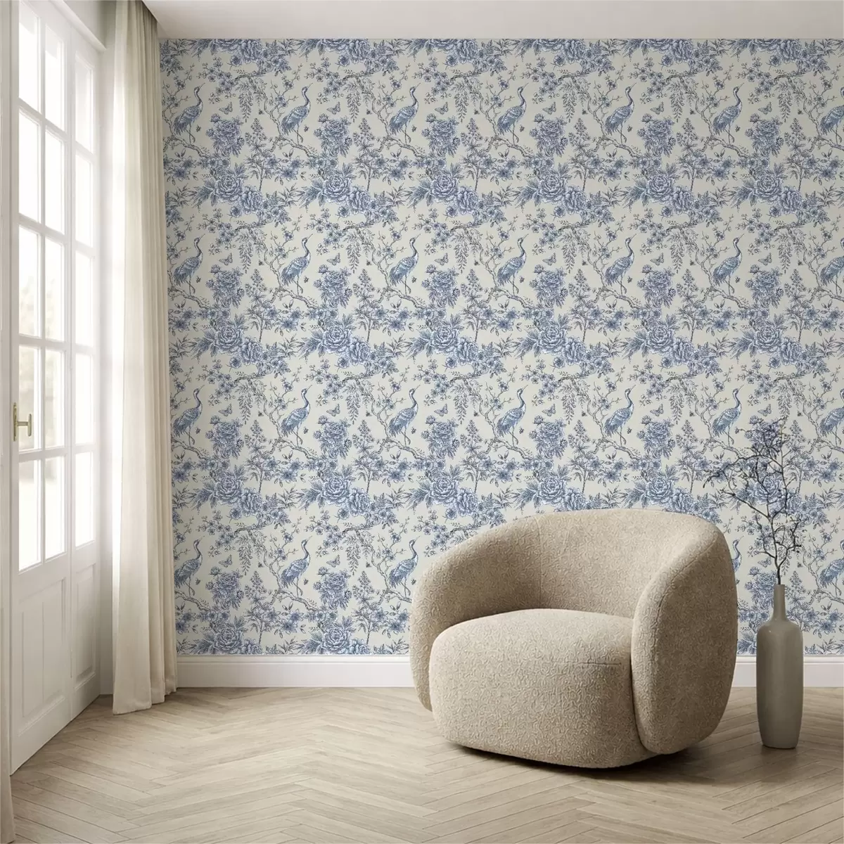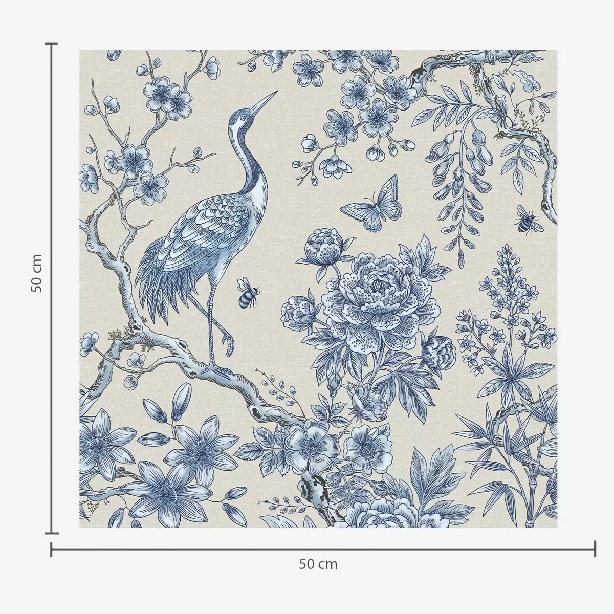 Tapéta Kék virágmotívum madárral és ágakkal Nr. a01132