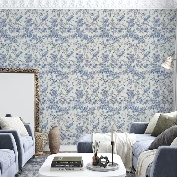 Tapéta Kék virágmotívum madárral és ágakkal Nr. a01132