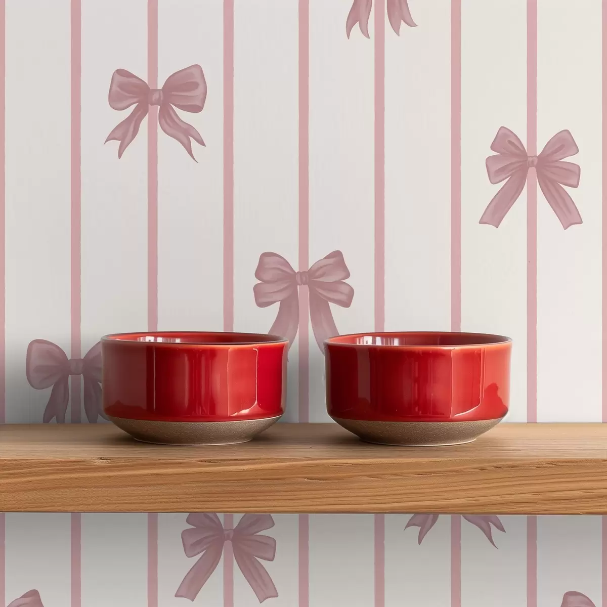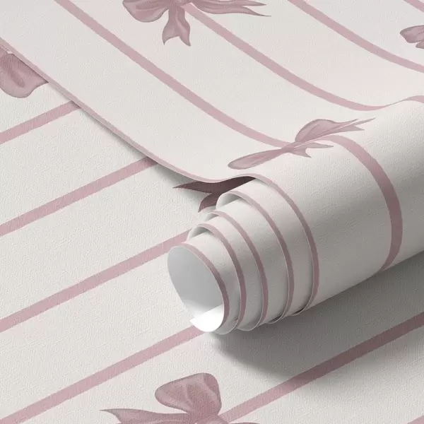 Tapéta Rózsaszín masnik függőleges csíkokon világos háttér előtt Nr. a01162