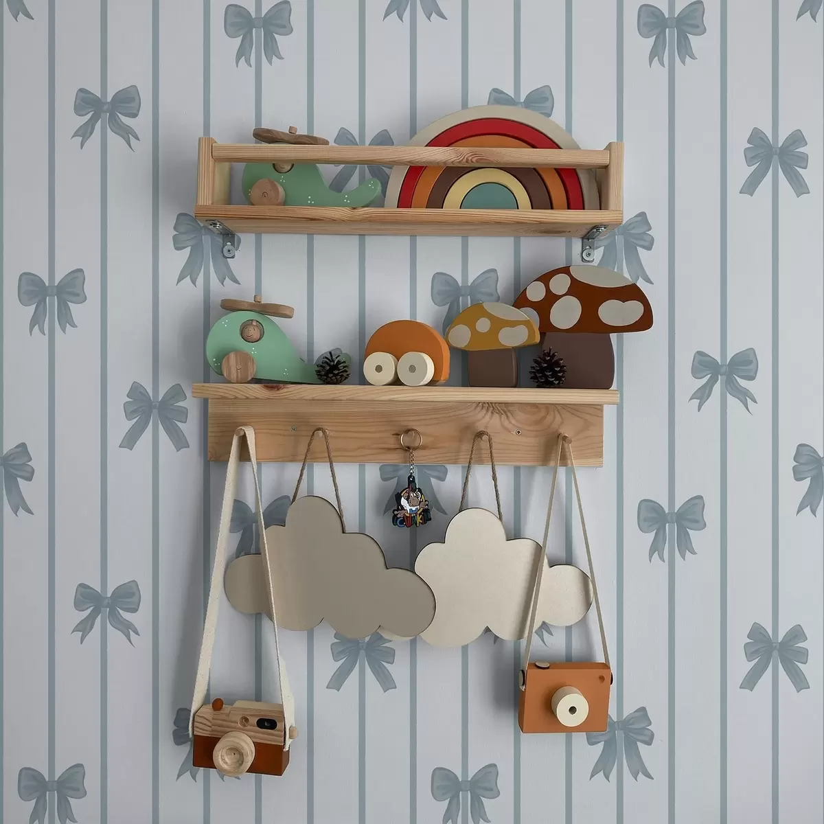 Tapéta Kék masnik csíkos világos háttér előtt Nr. a01162v2