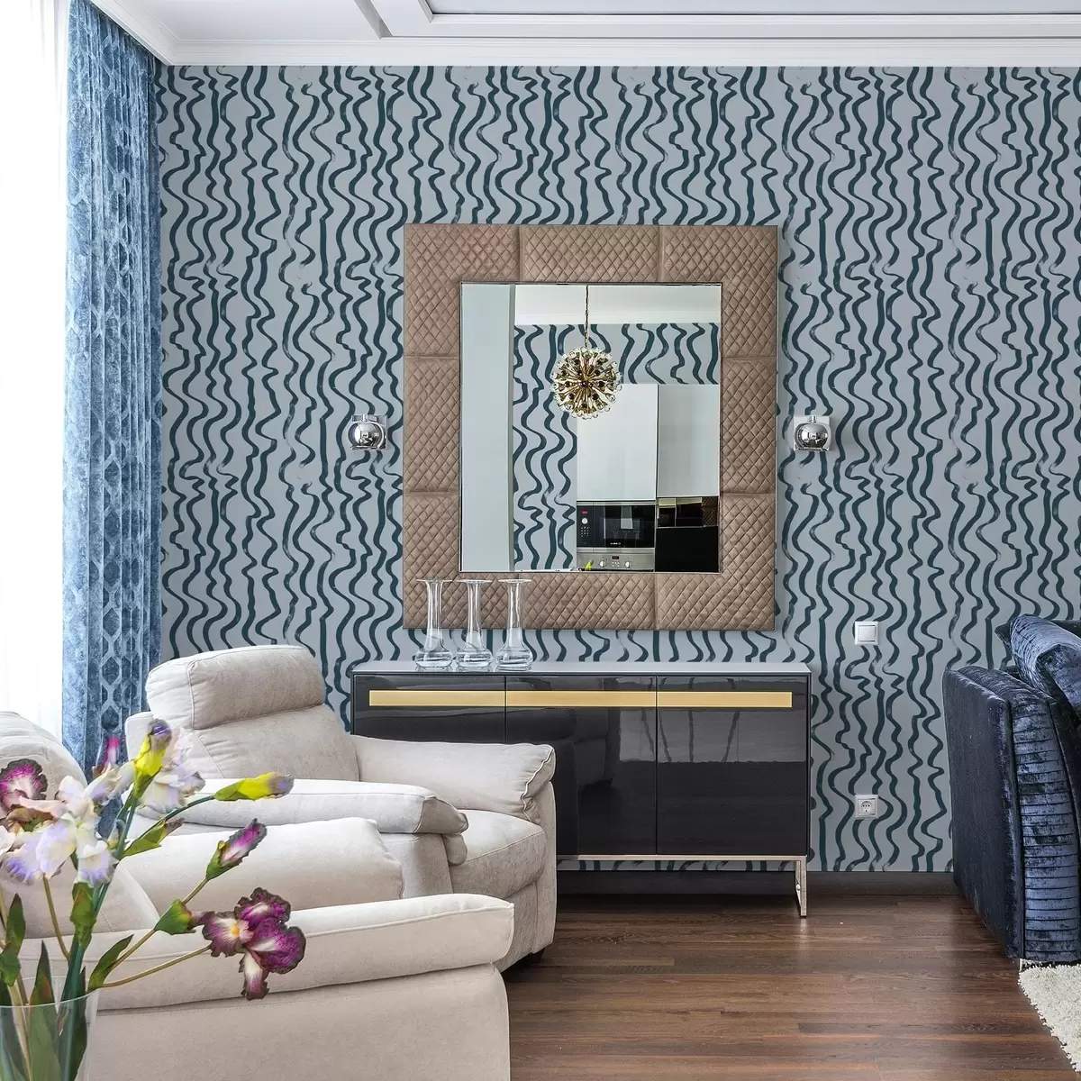 Tapéta Sötét hullámvonalak kék háttér előtt Nr. a01168v1