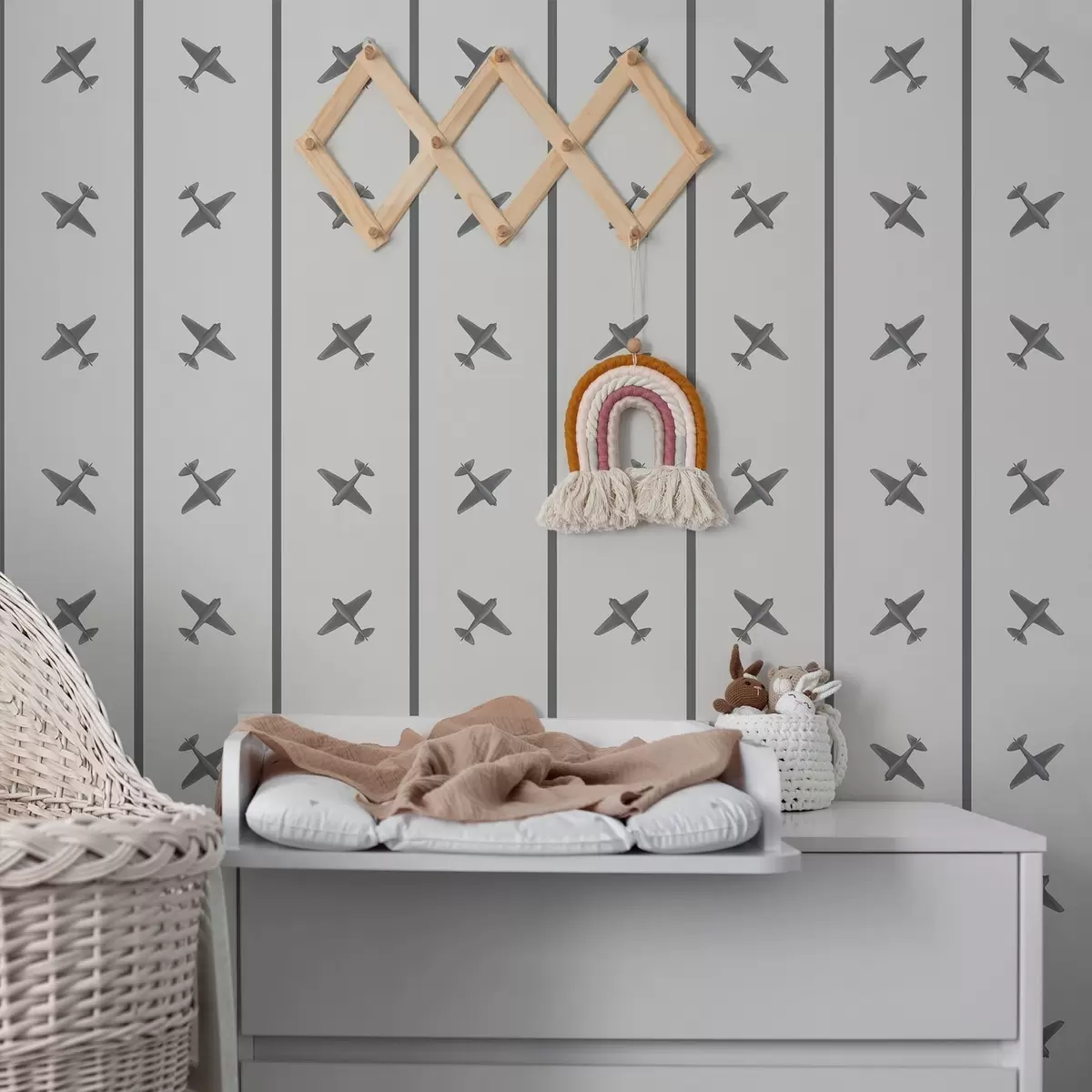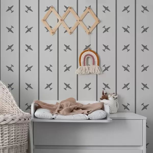 Tapéta Csíkos mintázatú repülőgépek szürke árnyalatokban Nr. a01169v2