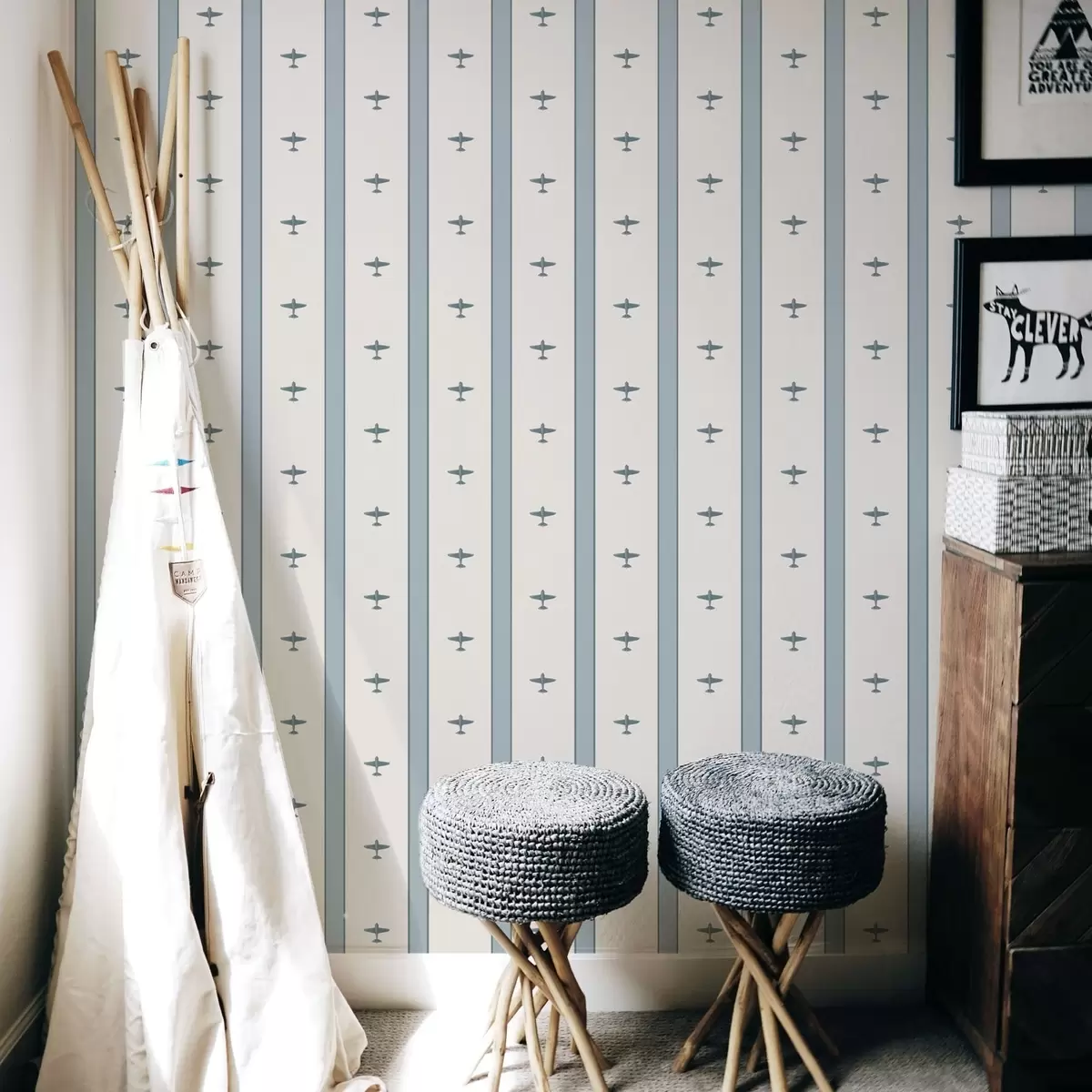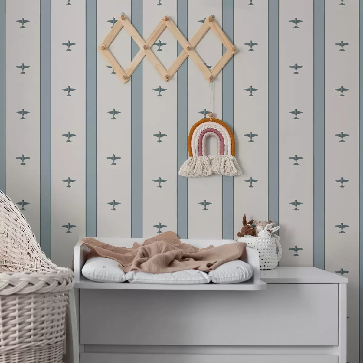 Tapéta Csíkos kis repülőgépek kék háttér előtt Nr. a01171