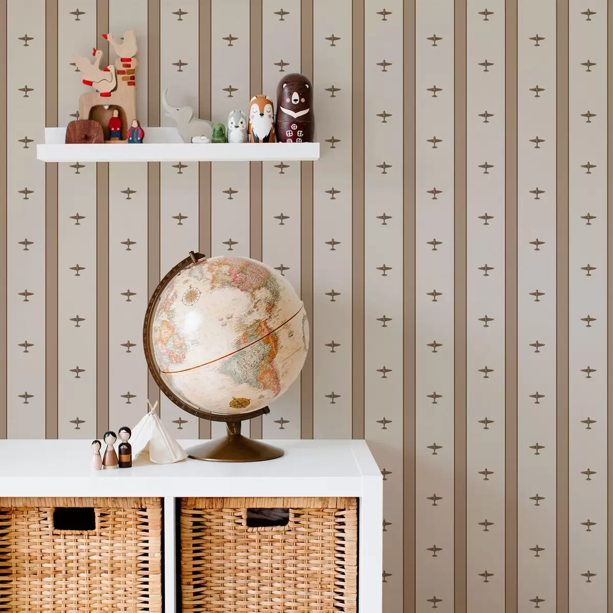 Tapéta Csíkos kis repülőgépek barna háttér előtt Nr. a01171v2