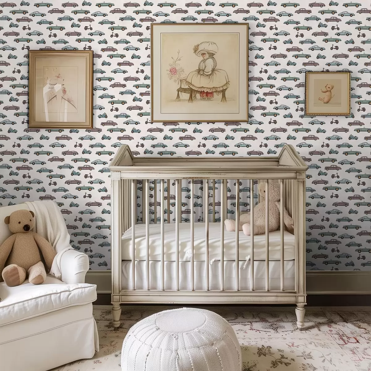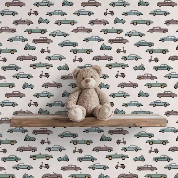 Tapéta Retro autók és robogók világos háttér előtt Nr. a01172