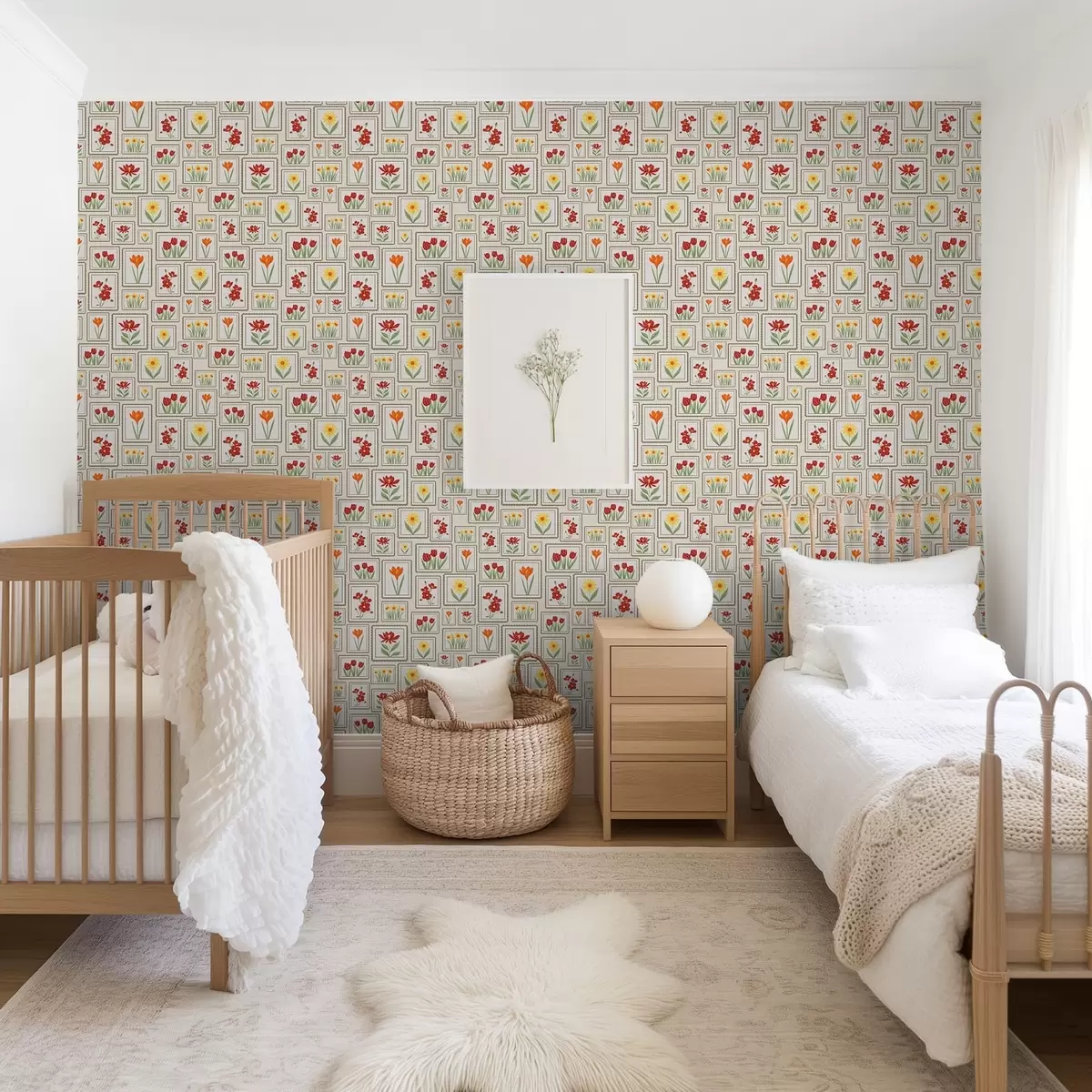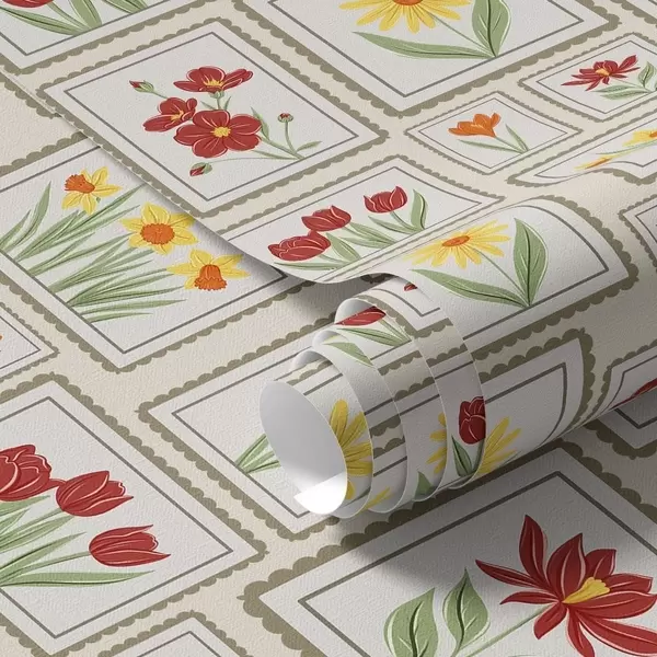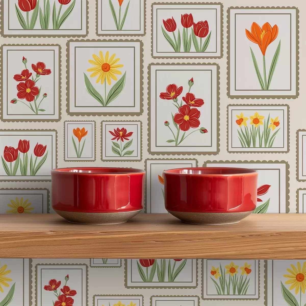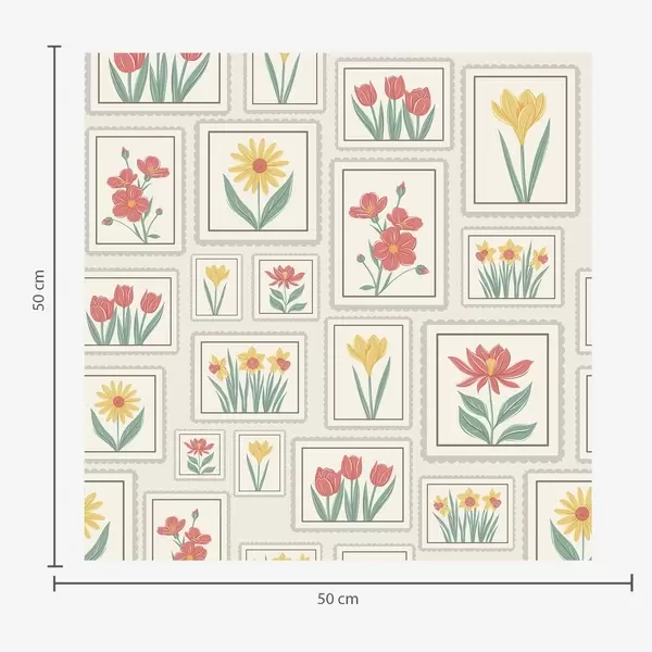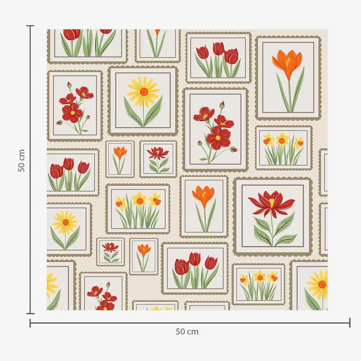 Tapéta Keretbe foglalt virágos illusztrációk meleg színekben Nr. a01173