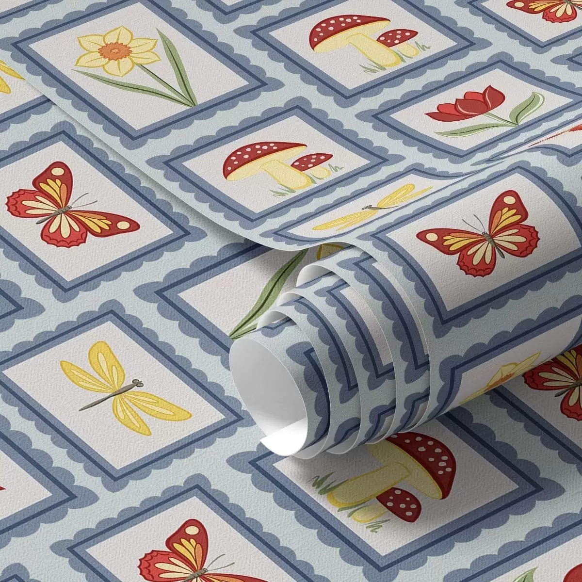Tapéta Kék árnyalatú, keretezett illusztrációk Nr. a01175v2
