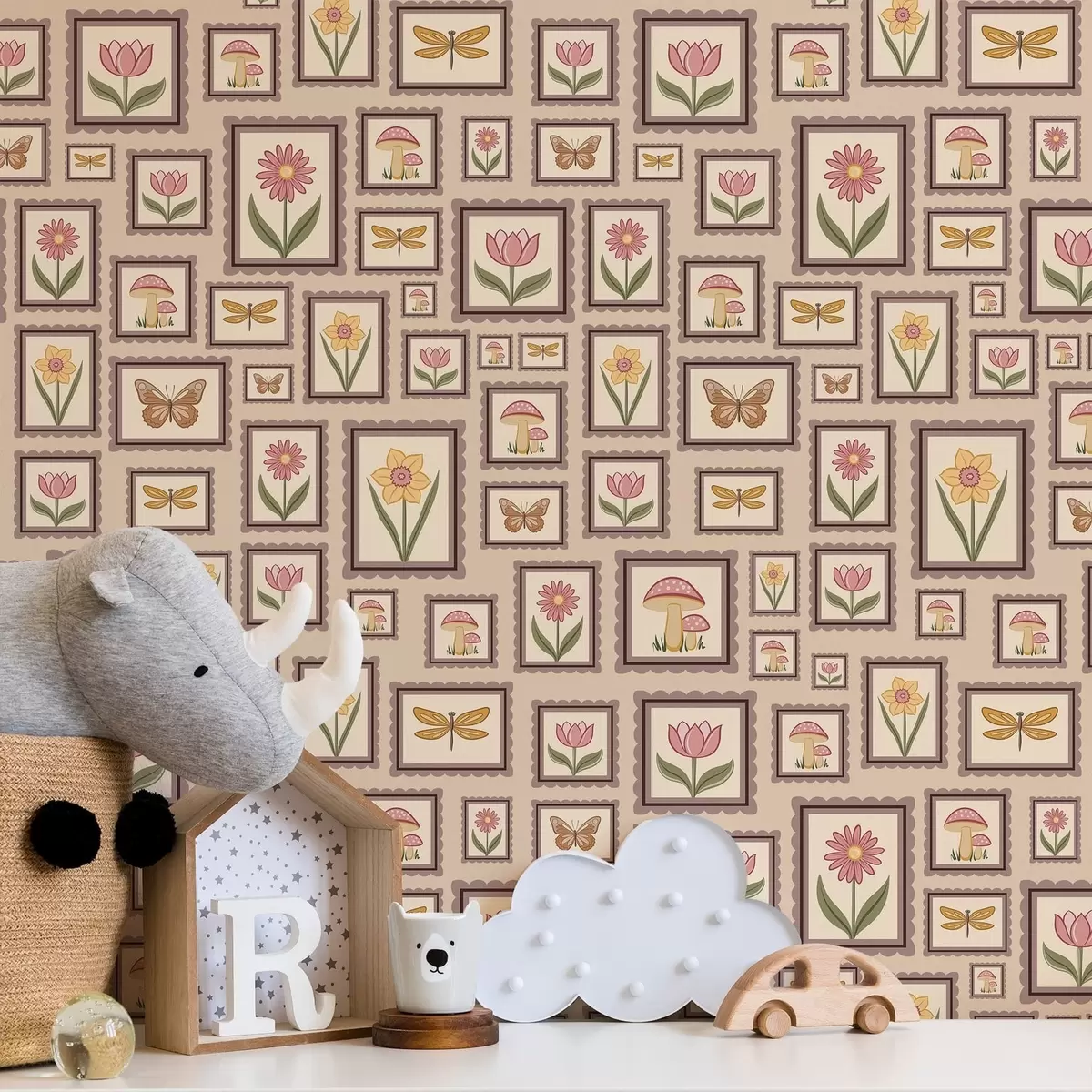Tapéta Keretbe foglalt illusztrációk meleg bézs árnyalatokban Nr. a01176v2