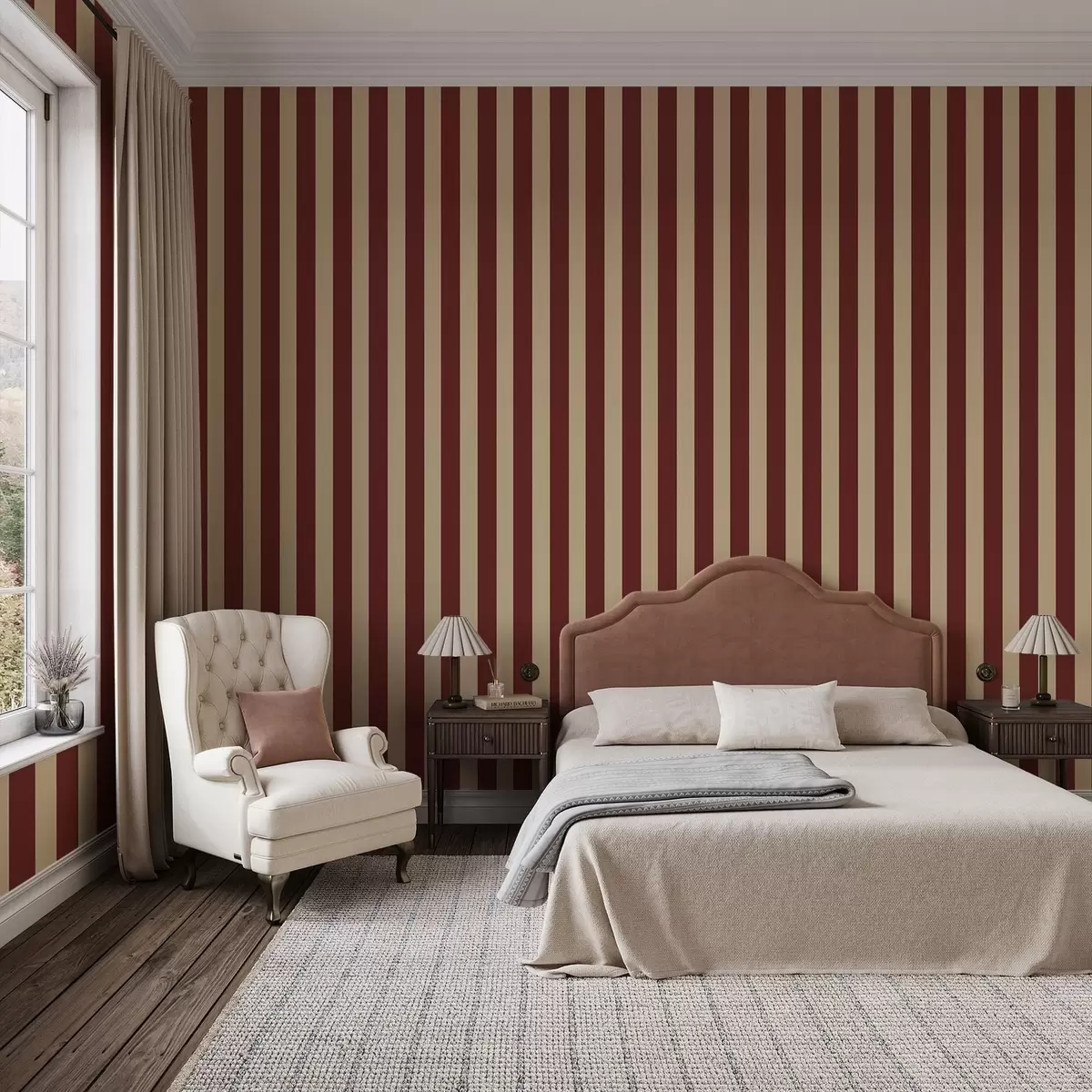 Tapéta Piros és bézs színű függőleges csíkok Nr. a01179