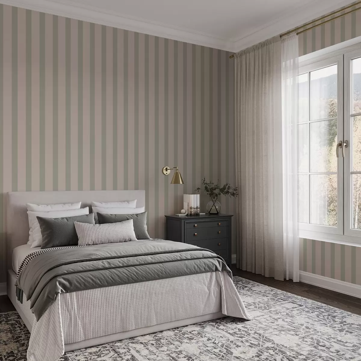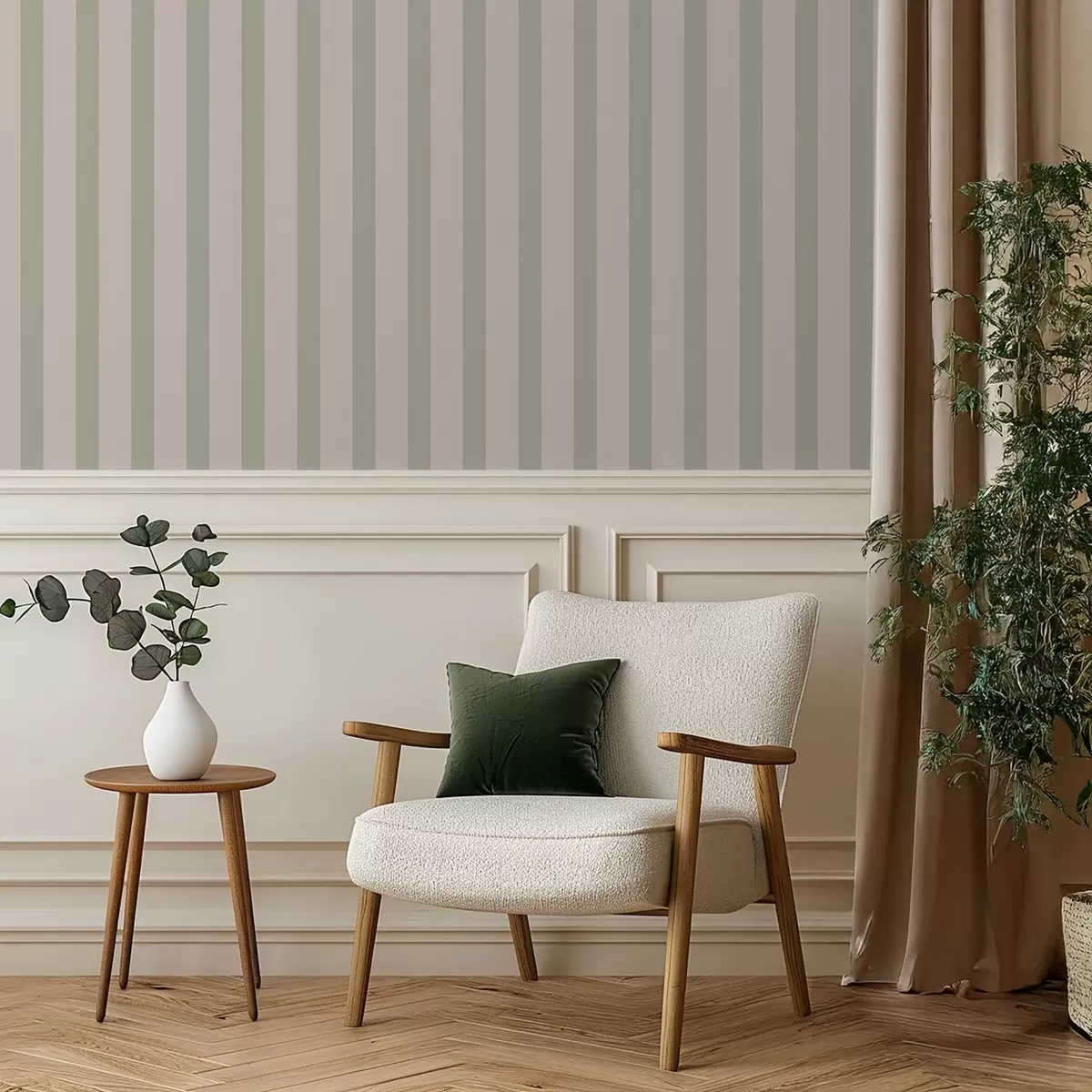 Tapéta Zöld és bézs függőleges csíkok Nr. a01180