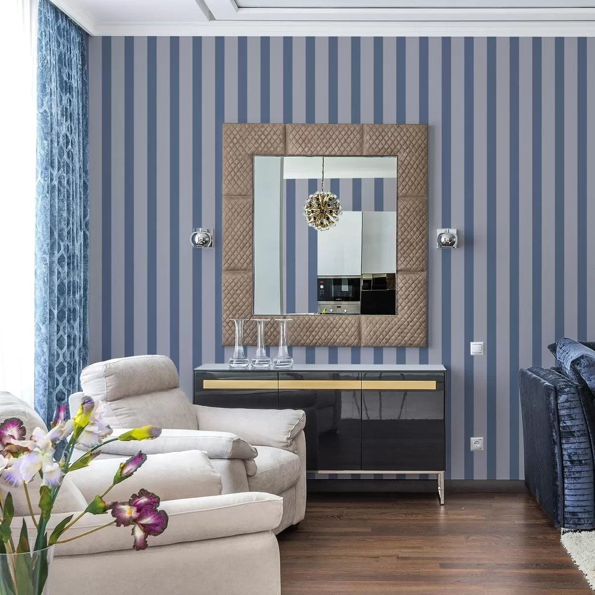 Tapéta Kék és szürke függőleges csíkok Nr. a01180v1