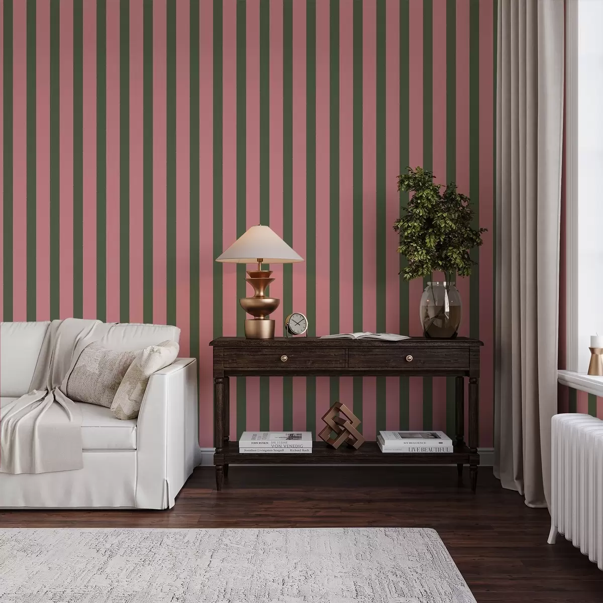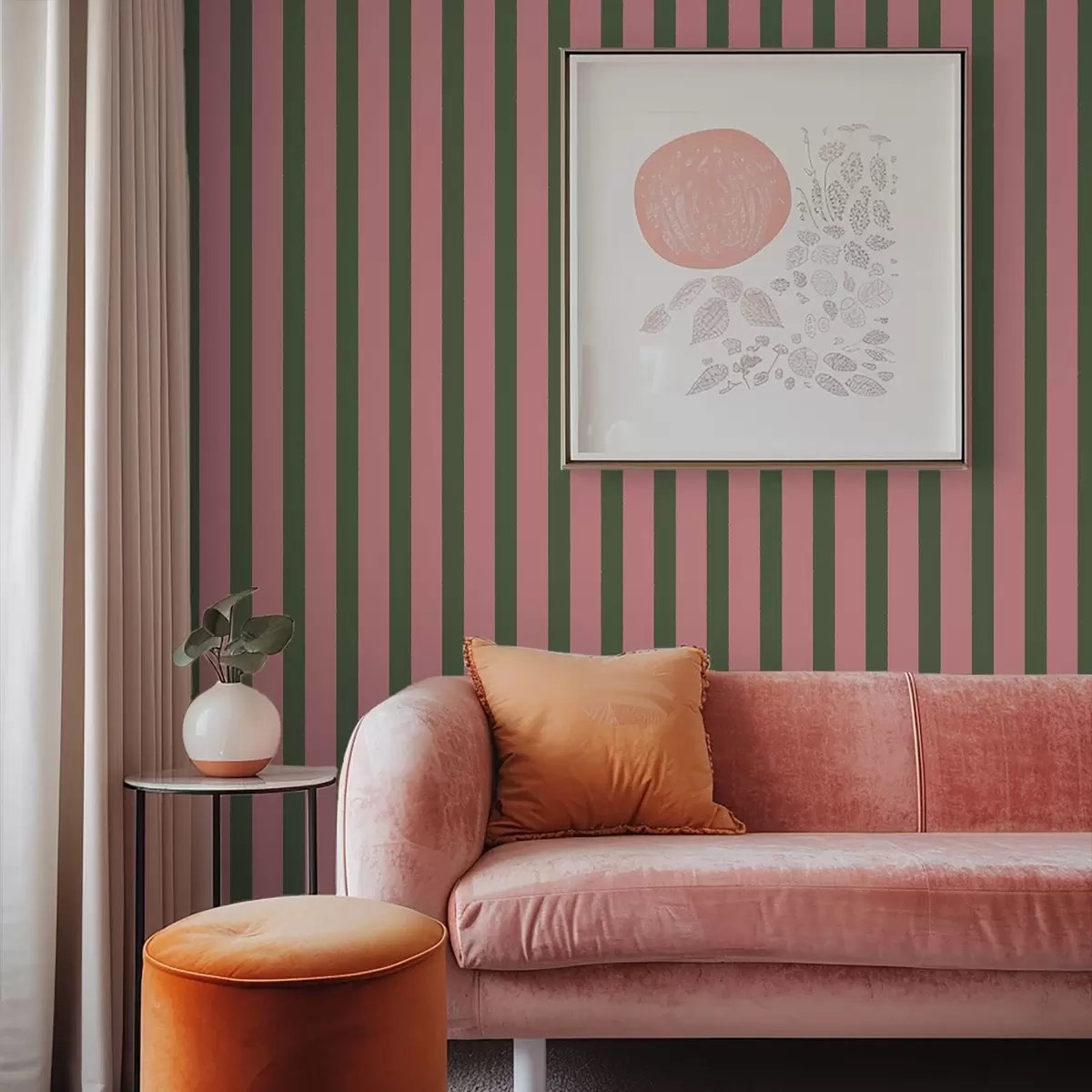 Tapéta Rózsaszín és zöld függőleges csíkok Nr. a01180v2