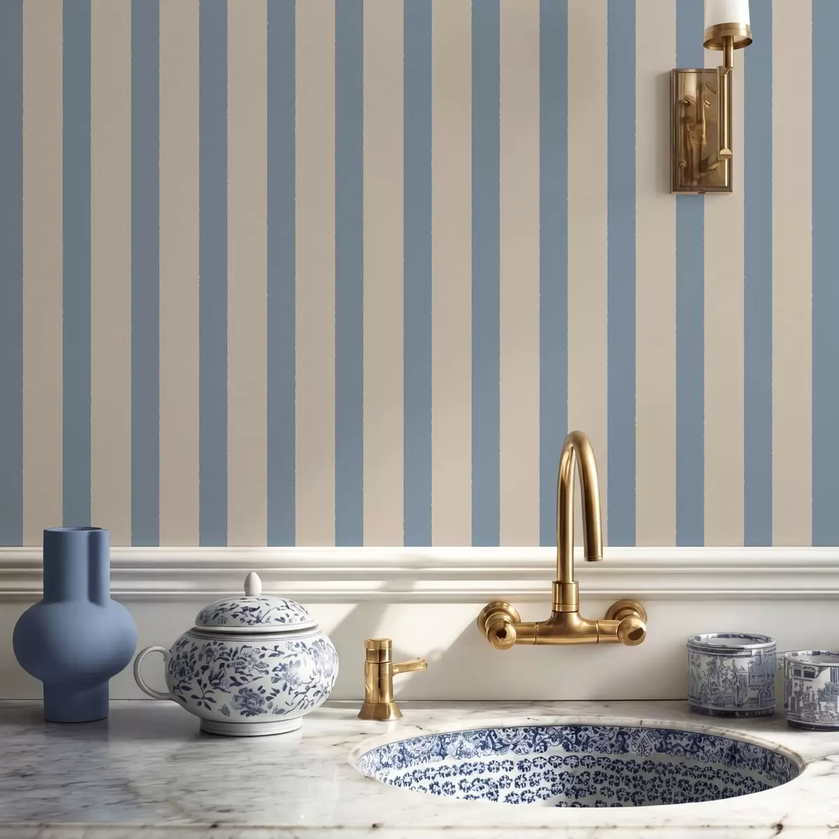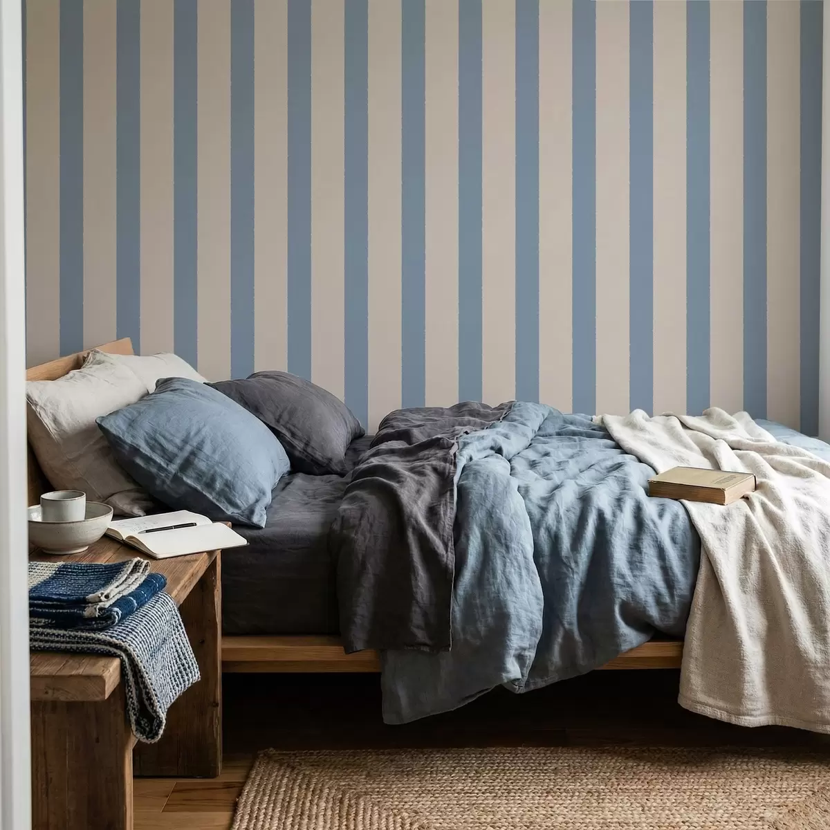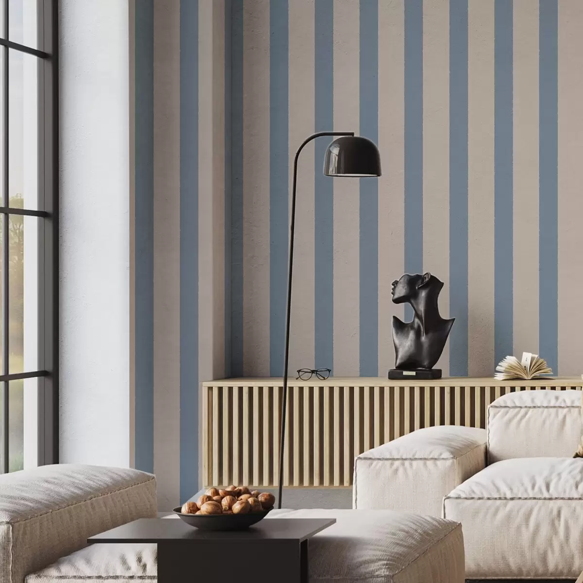 Tapéta Bézs és világoskék függőleges csíkok Nr. a01180v3
