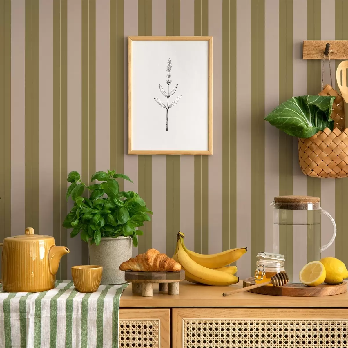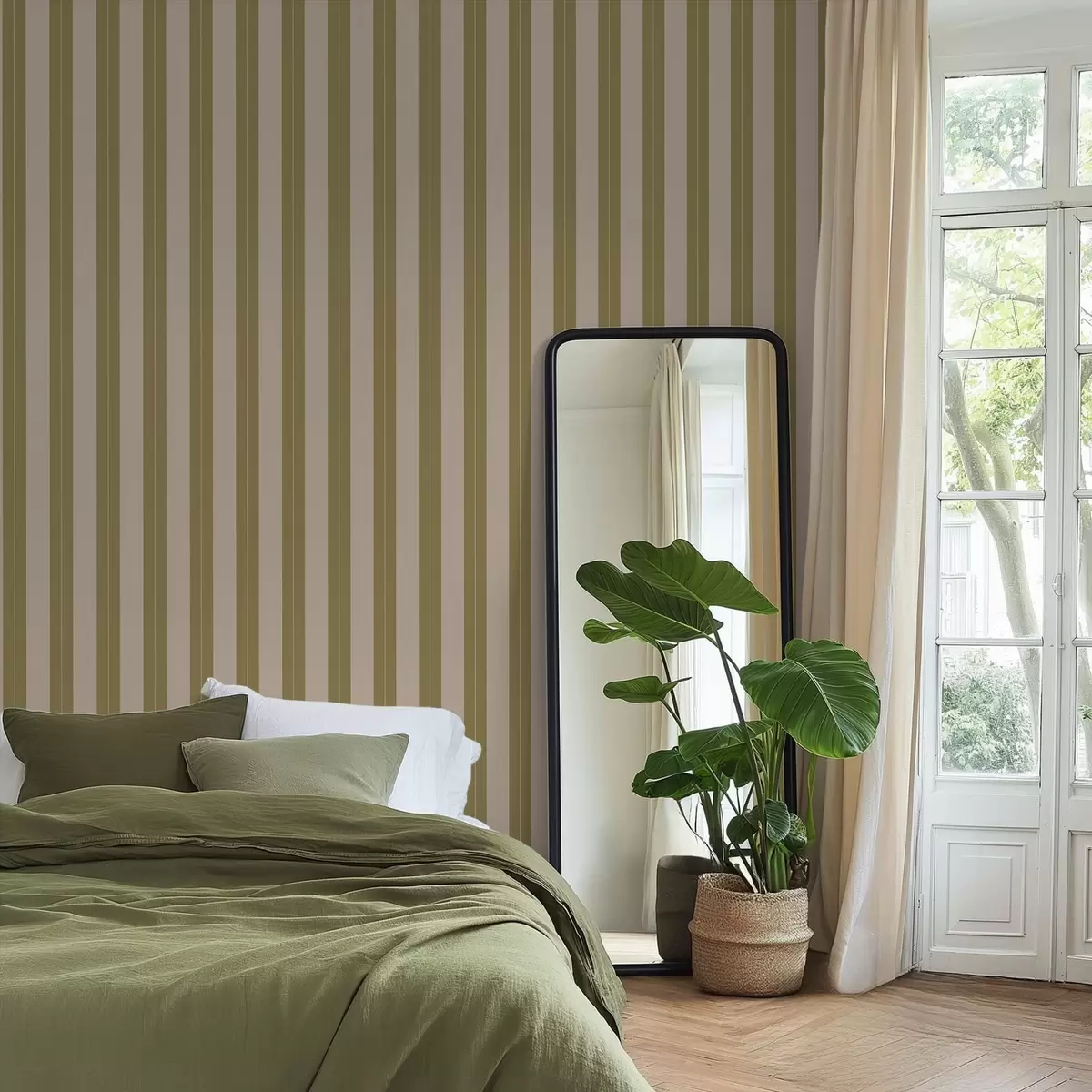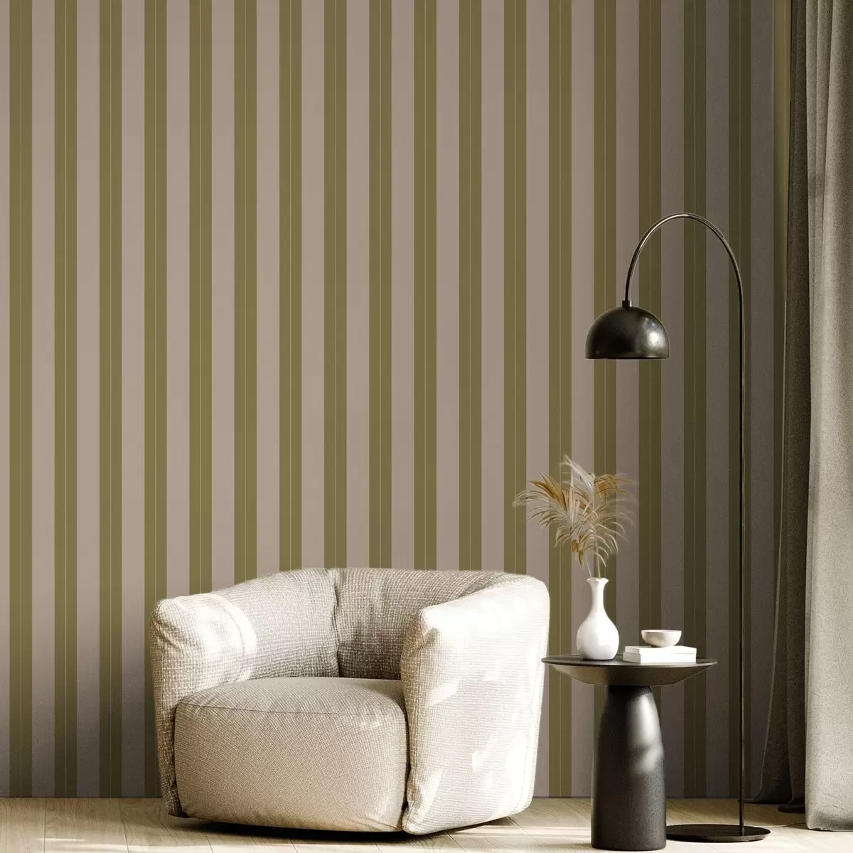 Tapéta Olívazöld és bézs színű függőleges csíkok Nr. a01181v2