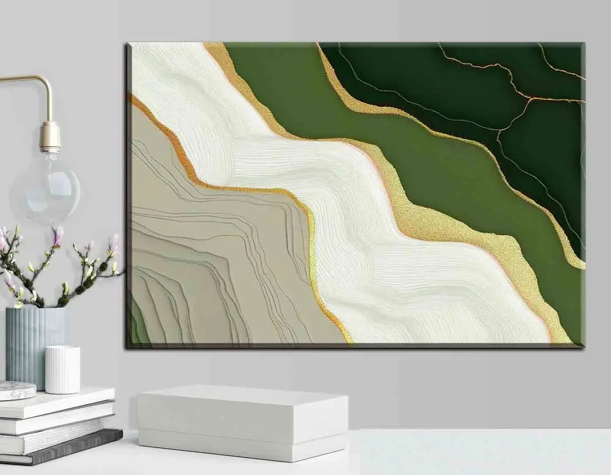 Vászonkép Absztrakt olajfestmény fekete, fehér, zöld és szürke festékekkel Nr s35427