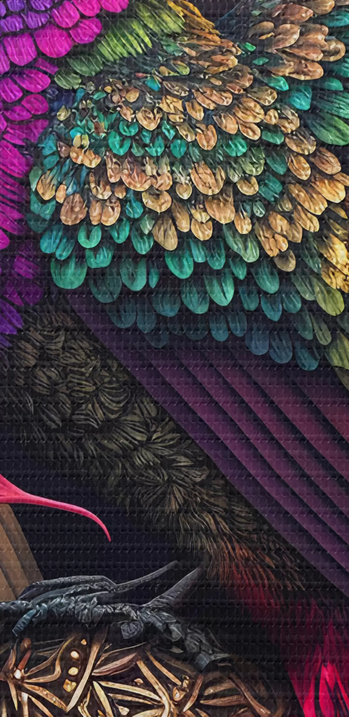 Ahhoz, hogy a vásznat a feszítőrúdra feszítsük anélkül, hogy a kép megsérülne, tükrözött képet használunk.