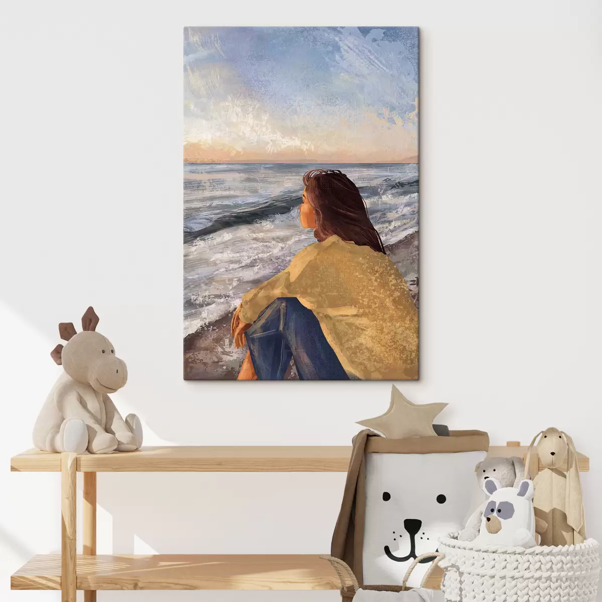 Vászonkép Nő a tenger mellett, a hullámokon gondolkodik Nr s35317