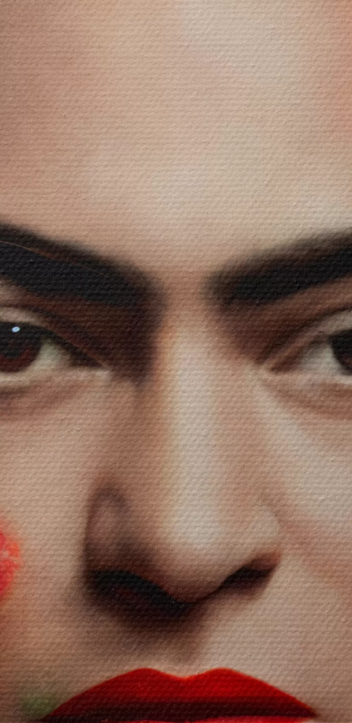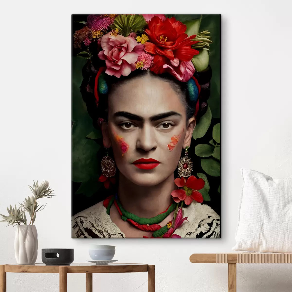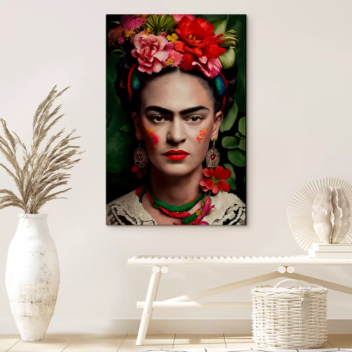 Vászonkép Frida Kahlo virágokkal, zöld háttérrel Nr s32861