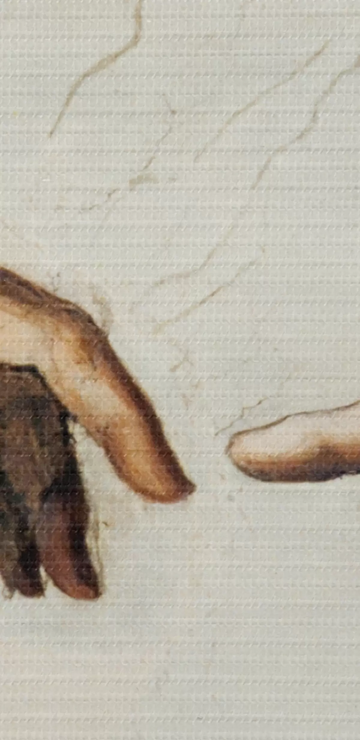 Ahhoz, hogy a vásznat a feszítőrúdra feszítsük anélkül, hogy a kép megsérülne, tükrözött képet használunk.